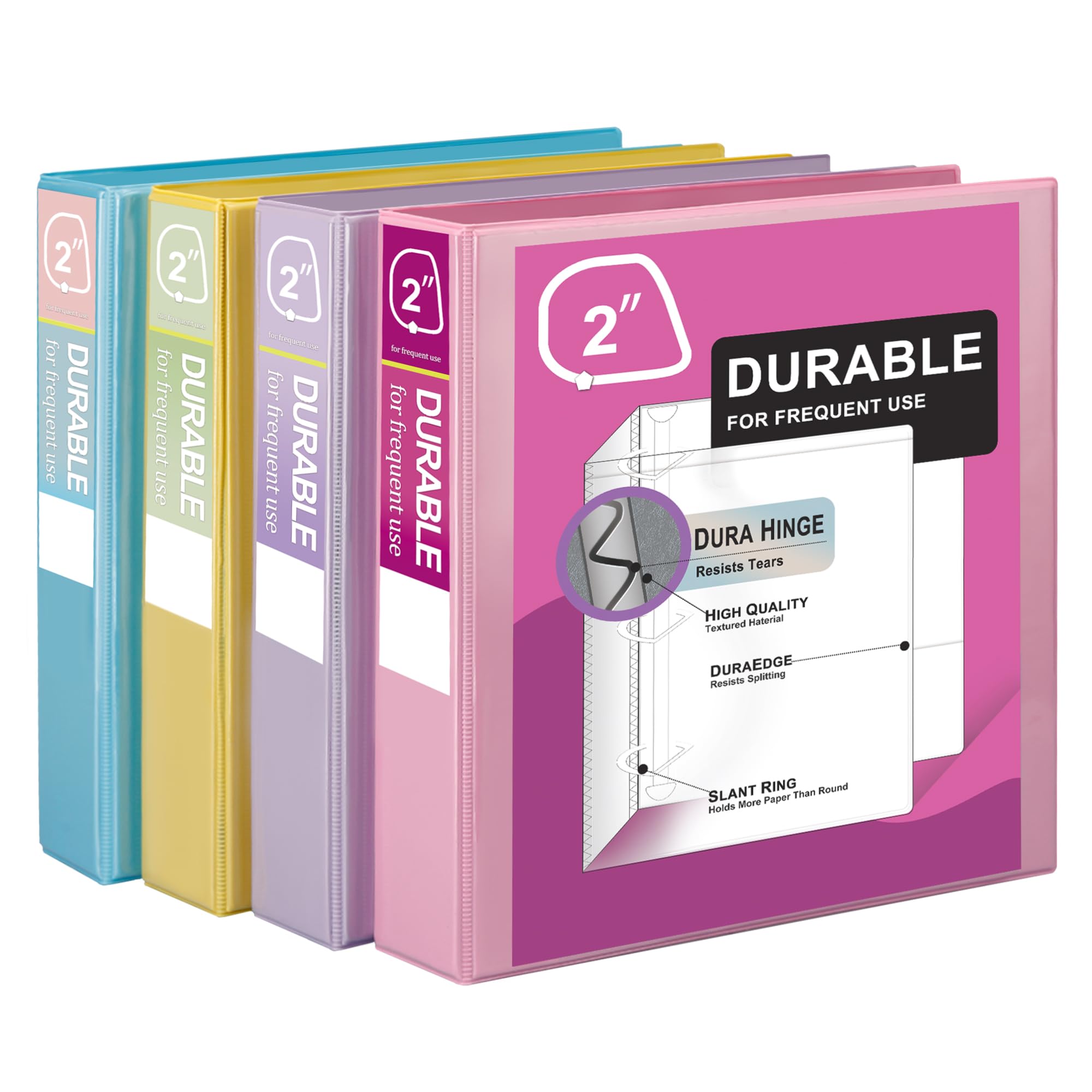 Enday Carpeta de 3 anillos de 1.5 pulgadas (paquete de 4) carpetas flexibles pastel con bolsillo para 280 hojas, para suministros