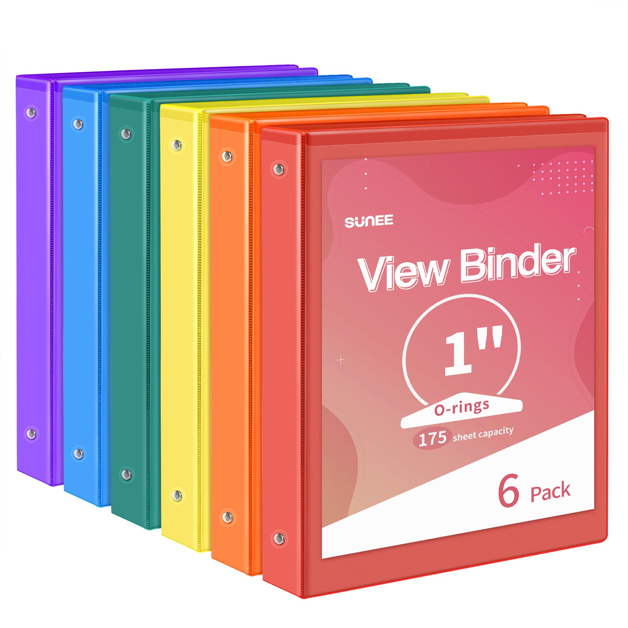SUNEE Paquete de 6 carpetas de 3 anillos de 1 pulgada, sin PVC (se ajusta a 8.5 x 11 pulgadas) para carpetas escolares u suministr