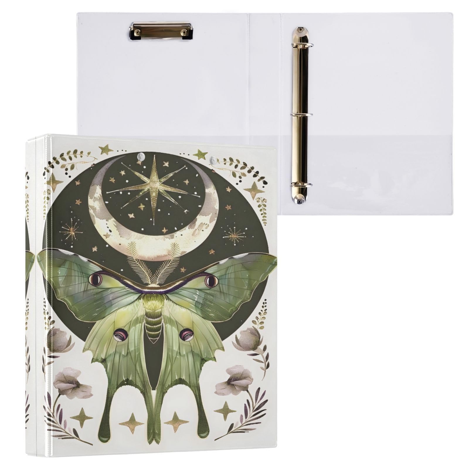 Carpeta de 3 anillos con diseño de luna y polilla redonda de 1.5 pulgadas con 200 hojas para mujeres, hombres, oficina, niños, sum