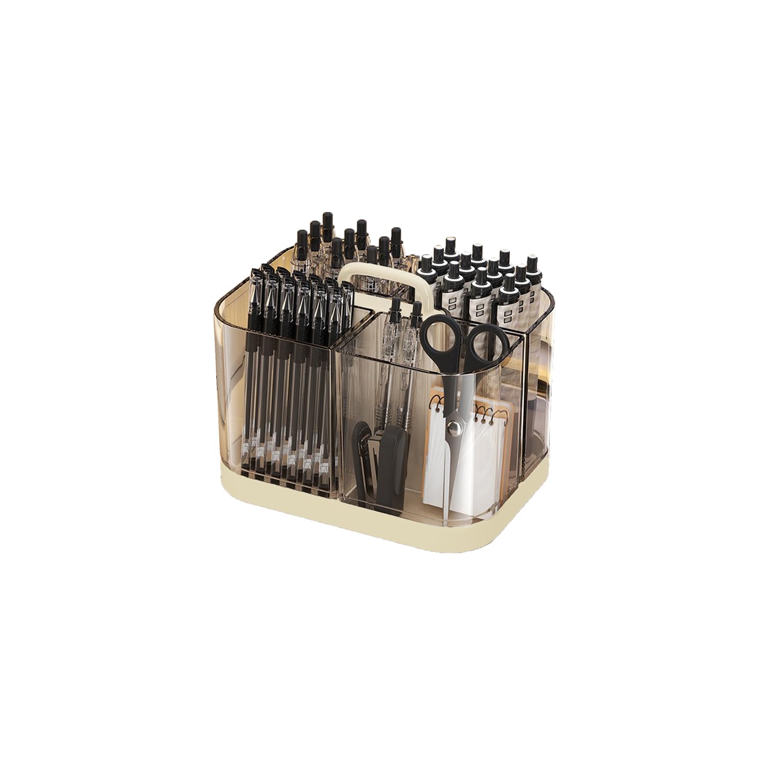 Organizador apilable con asa, organizador de escritorio portátil transparente para suministros de manualidades, oficina, papelería