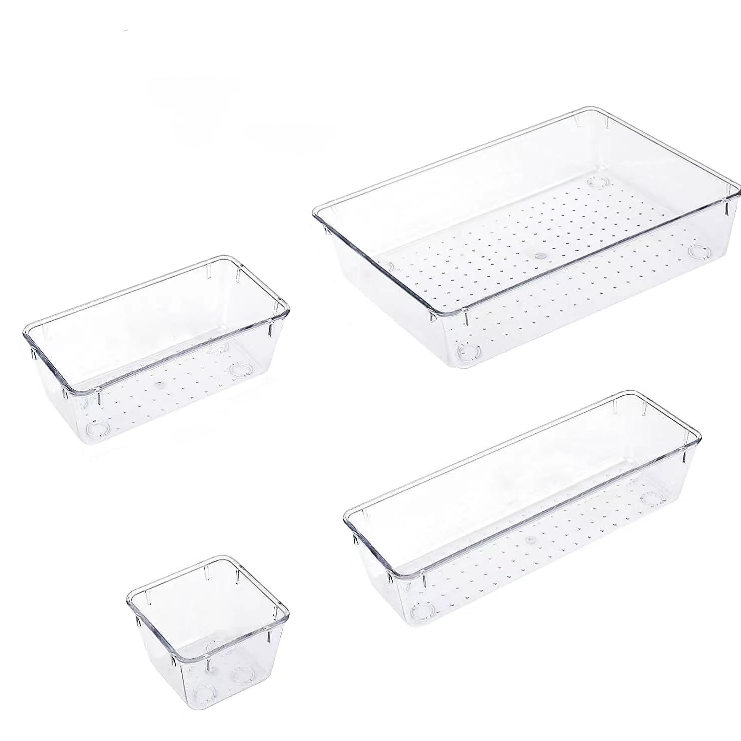 Homaisson 4 Pcs Plastic Drawer Organizers, Large White Cosmetic and Office Organizer Trays, Stackable Storage Boxes, Ideal for Des