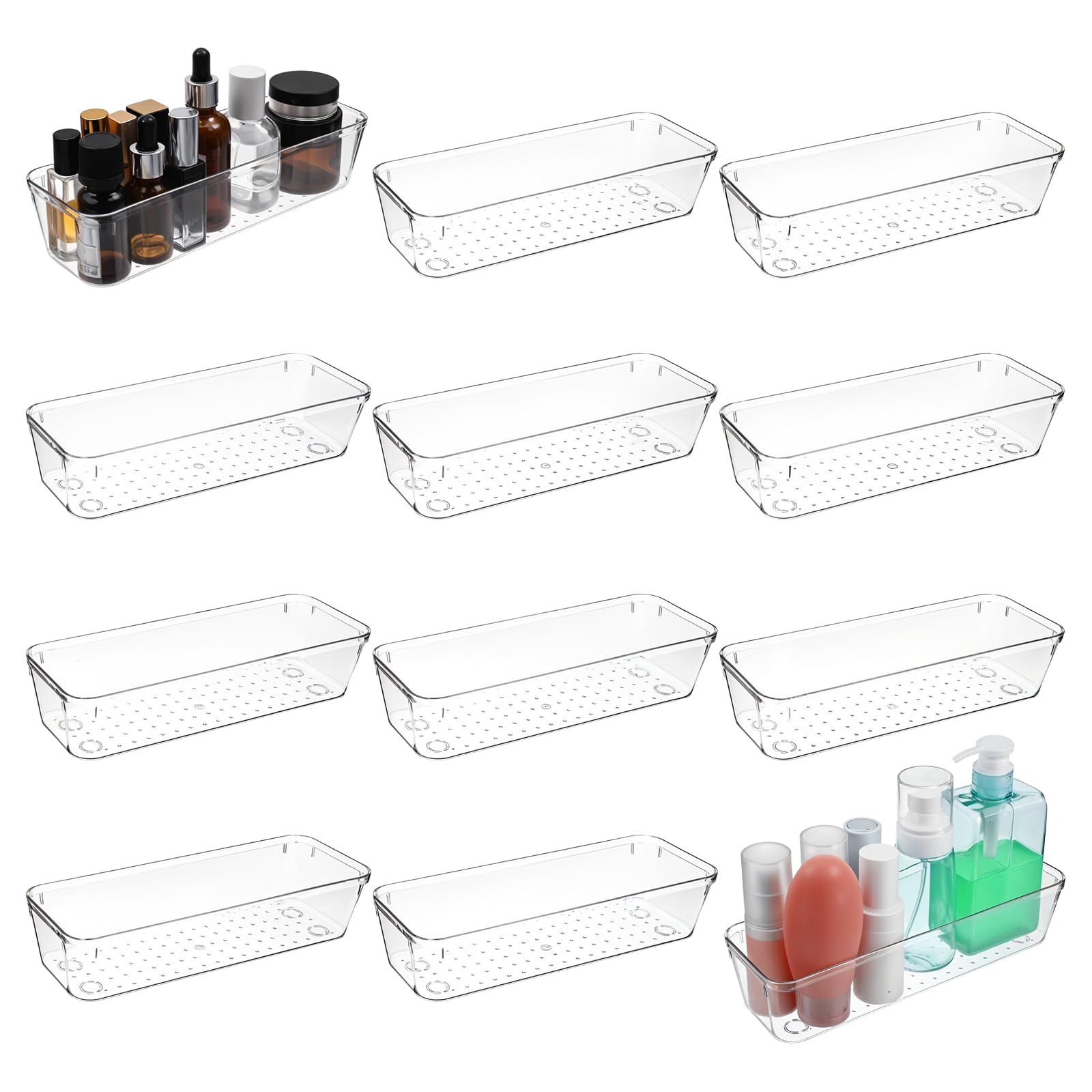 12 Pcs Clear Drawer Organizers, Vanity Drawer Organizer for Kitchen Utensils, Bathroom Drawers Organizer Trays, Durable Acrylic Dr