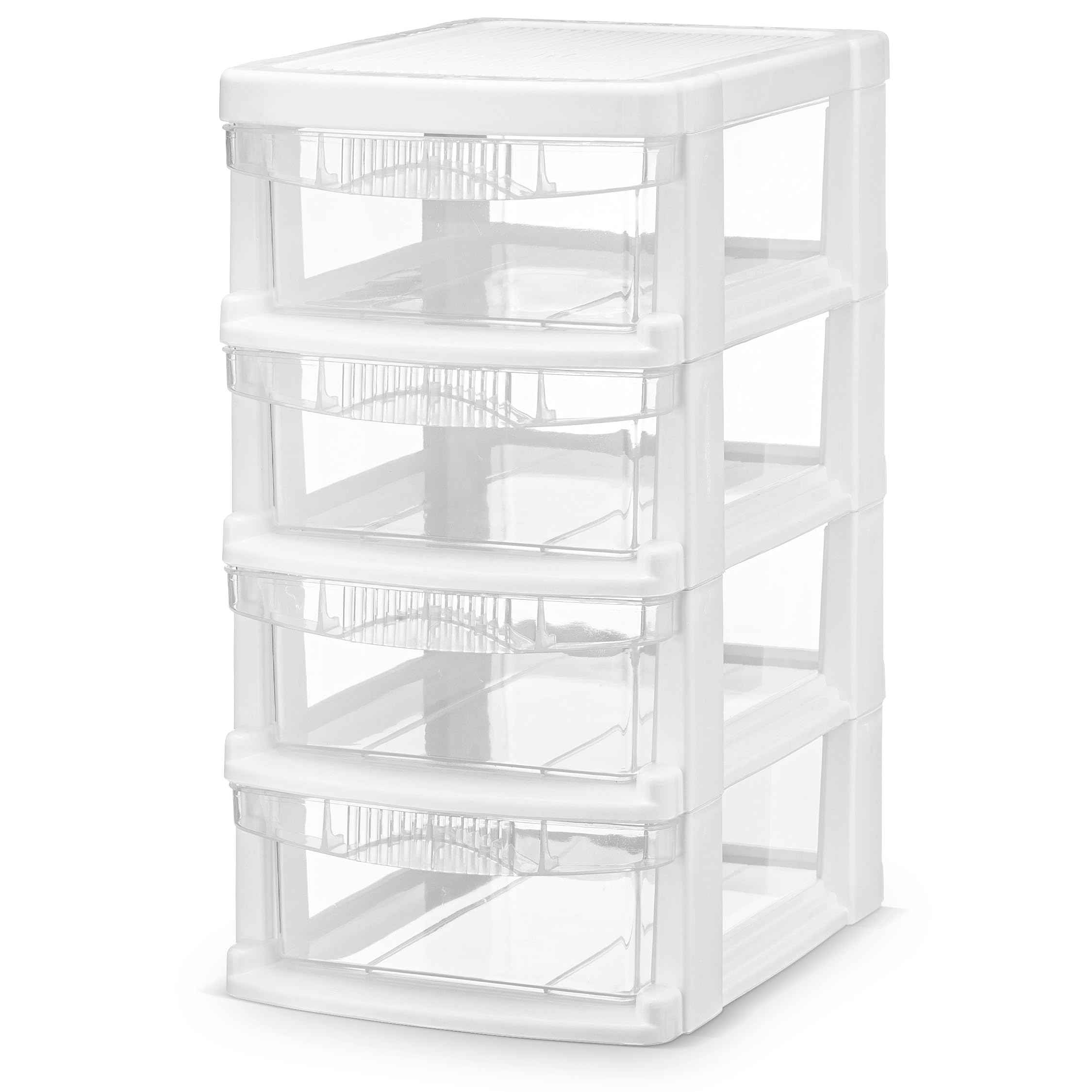 Mini organizador de plástico apilable para escritorio, con 4 cajones, para maquillaje, tocador, esmalte de uñas, baño, papelería,