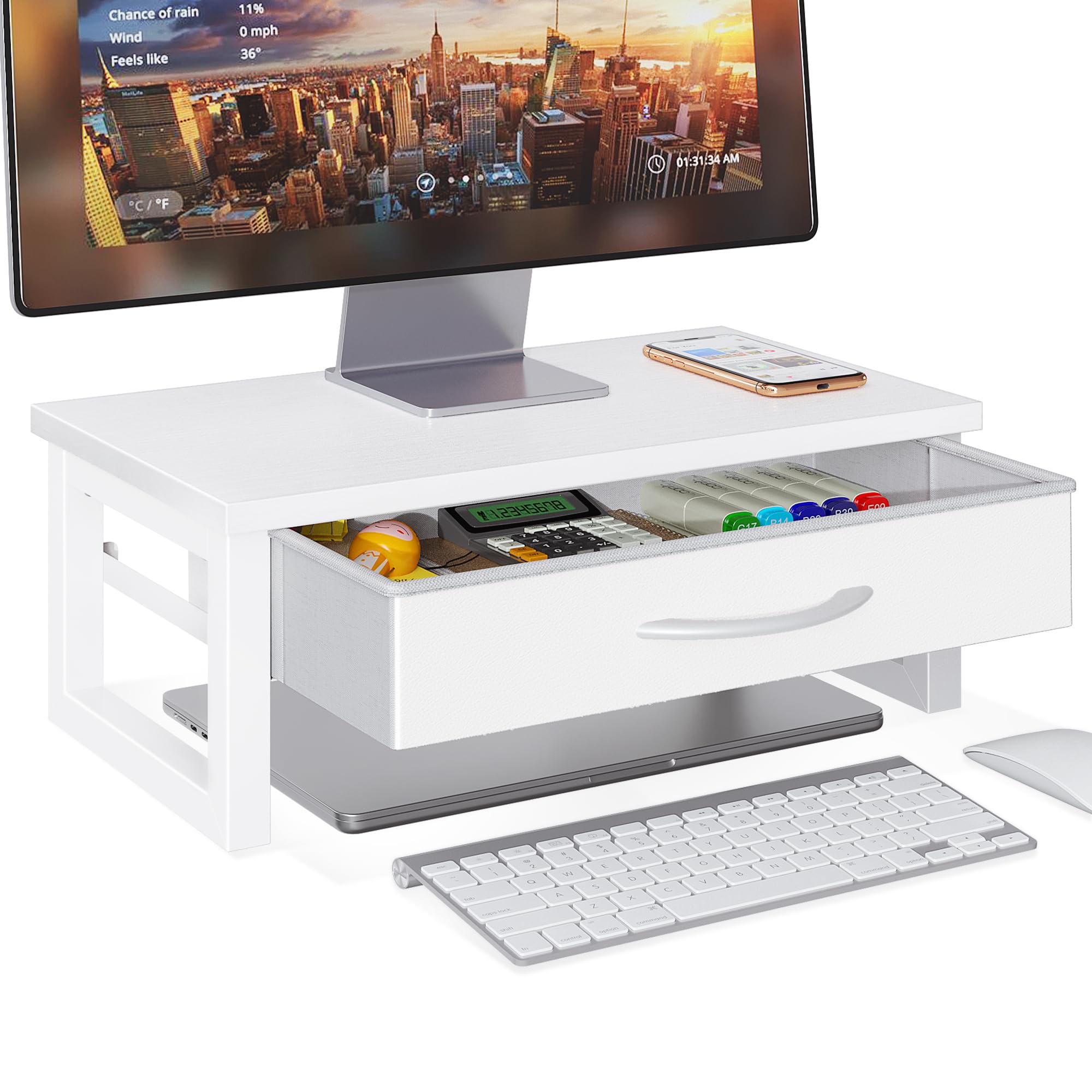 Organizadores de escritorio y accesorios, soporte elevador para monitor de computadora con cajón, soporte blanco para computadora