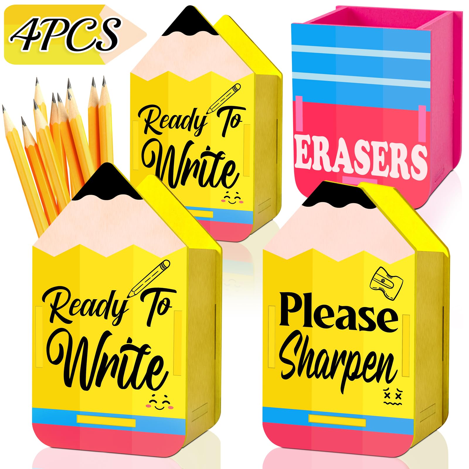 4 dispensadores de lápices para la organización del aula, soporte afilado y opaco de madera para escritorio de profesores, regreso
