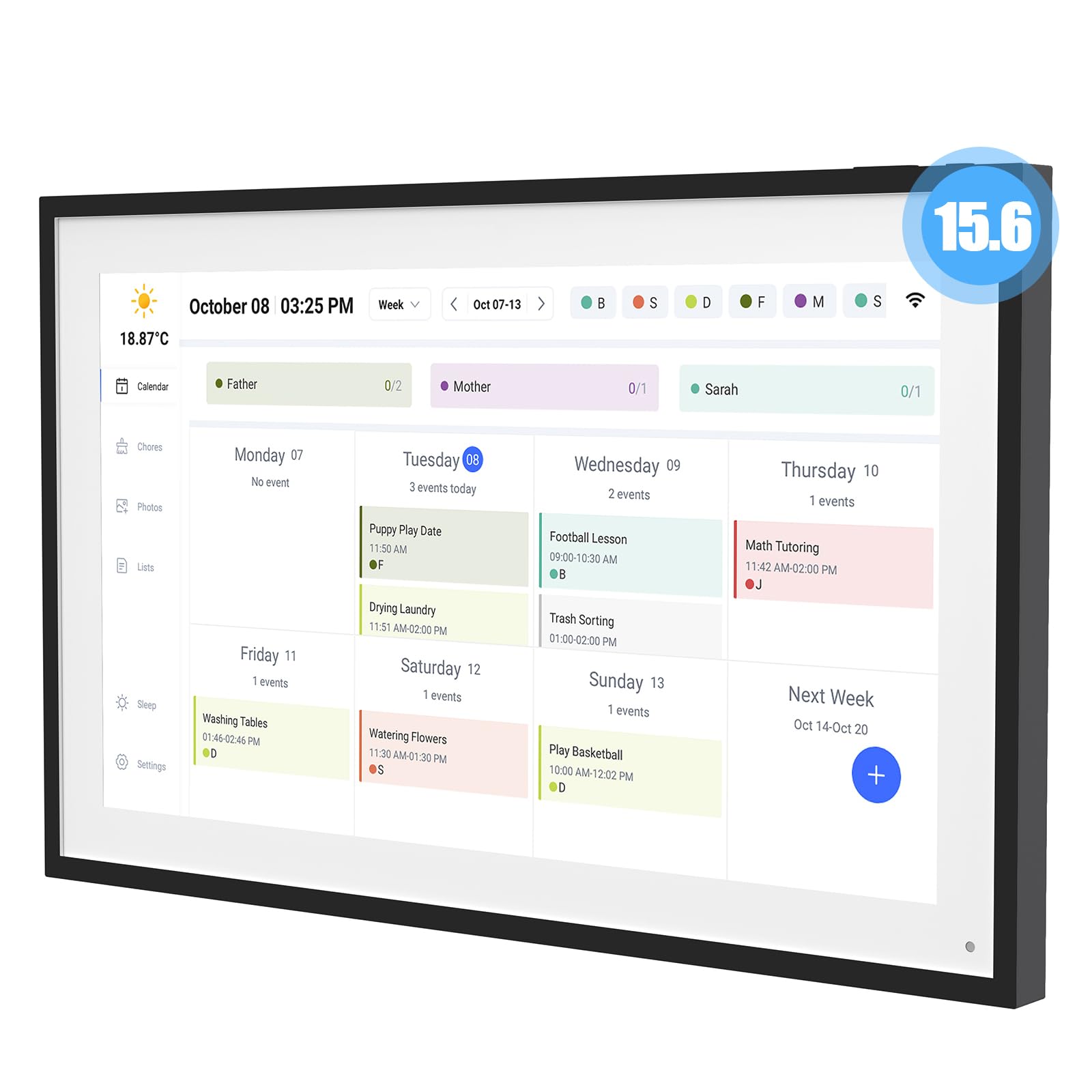 Calendario digital HD de 15.6 pulgadas, tabla de tareas, pantalla táctil inteligente interactiva para horarios familiares, función