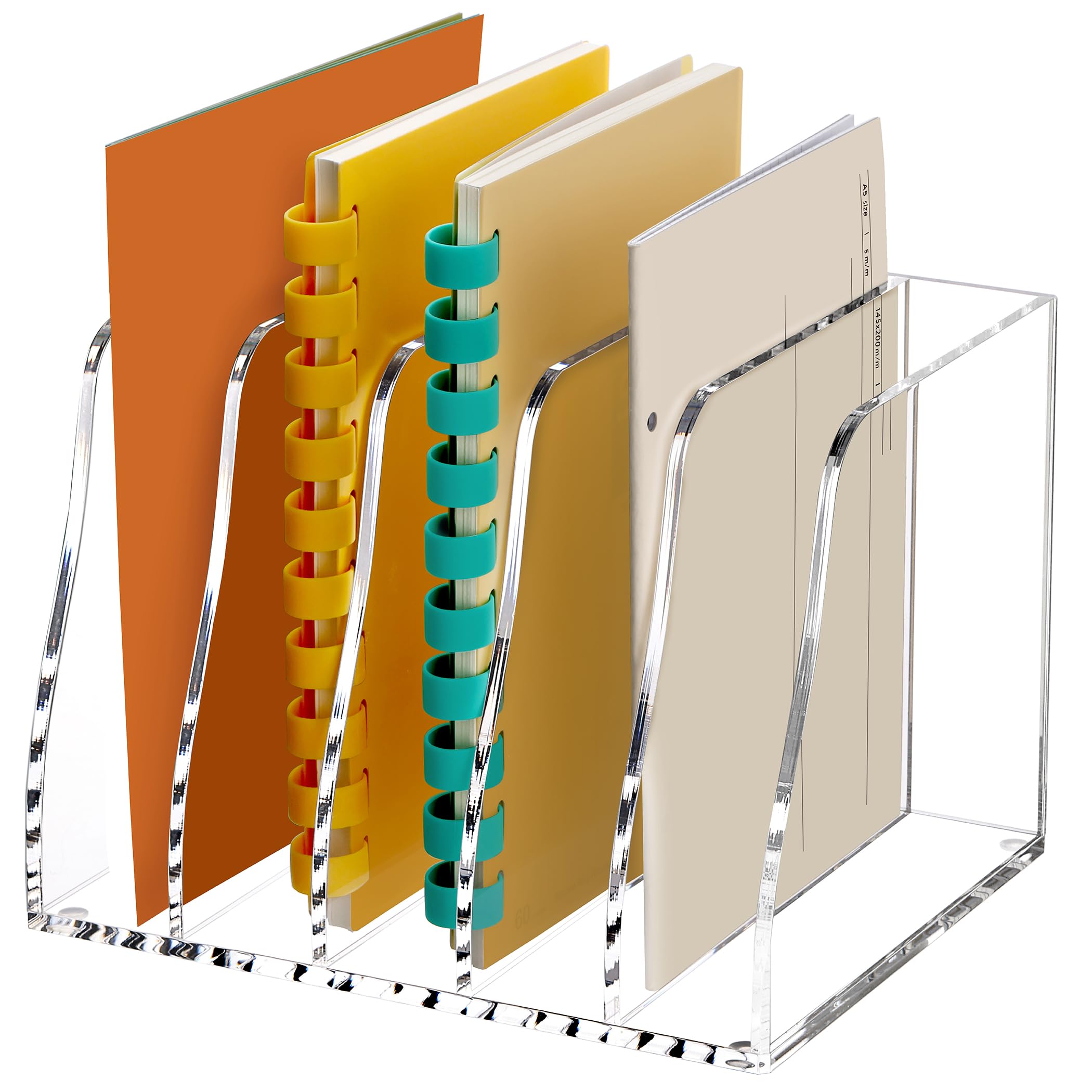 SANRUI Organizador de archivos de escritorio de acrílico, 5 compartimentos verticales, soporte transparente para archivadores, cla