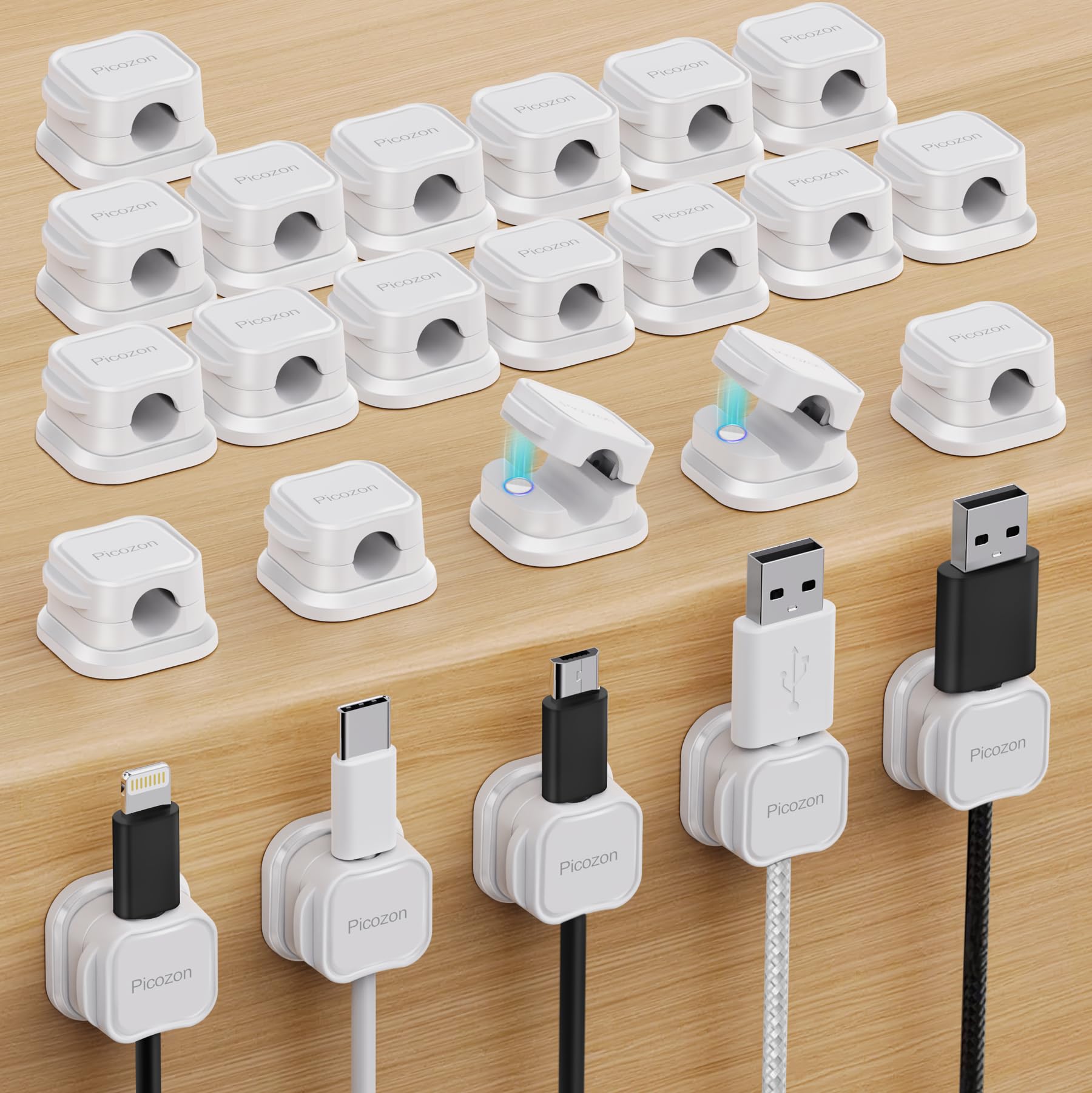 Picozon – Paquete de 24 soportes magnéticos para cables, organizador de cables adhesivos de Picozon para teléfono, cargador USB, o