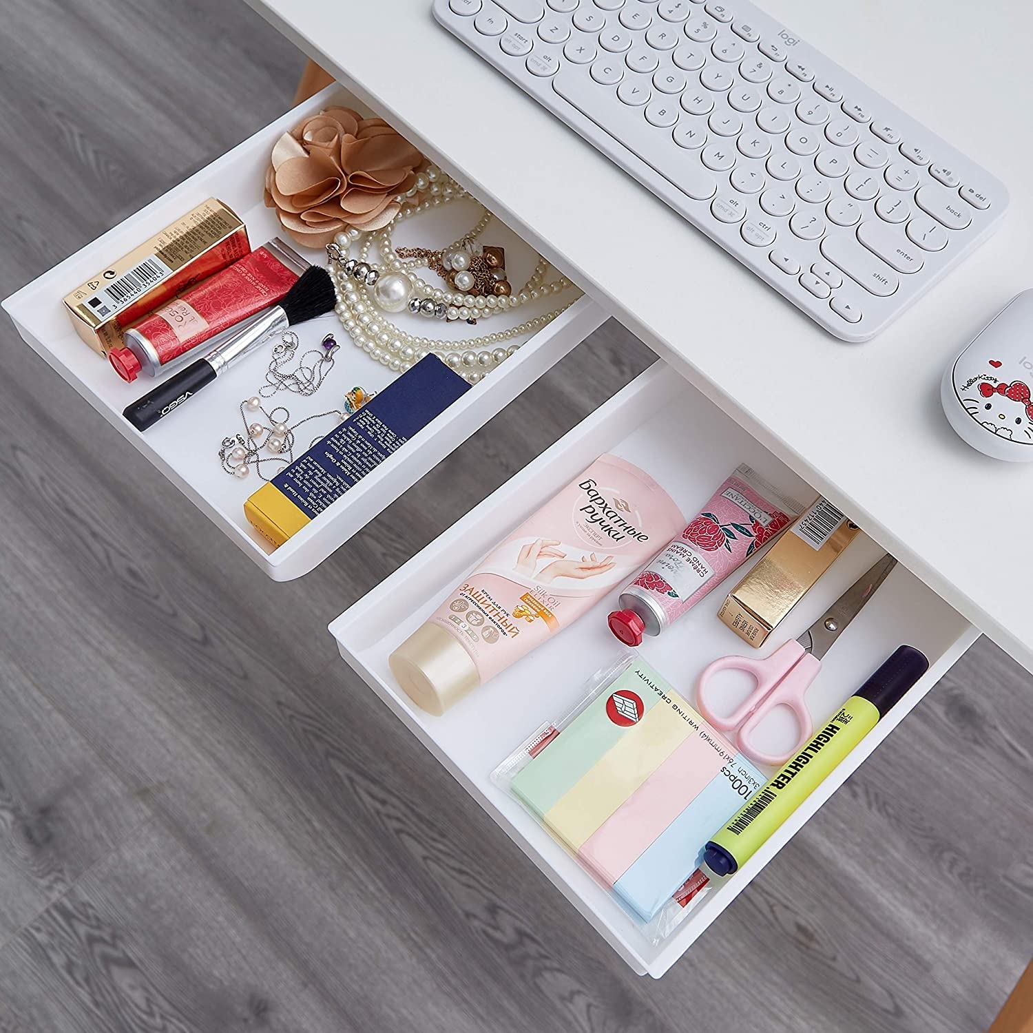 Paquete de 2 organizadores de cajones debajo del escritorio, bandeja autoadhesiva deslizante para cajón de escritorio, cajón ocult