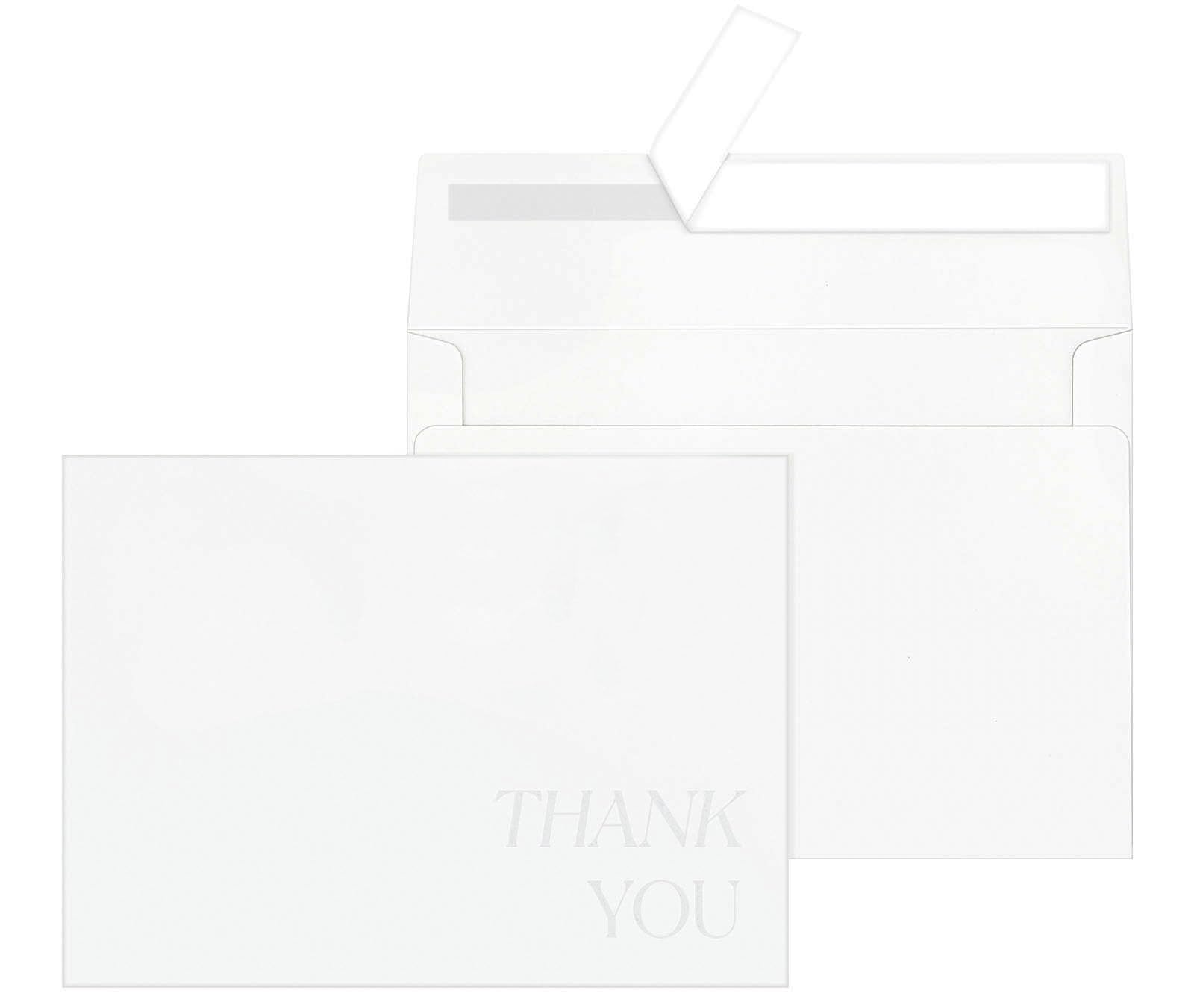 Sobres A7 de 5 x 7 para invitaciones con letra de agradecimiento grabada (blanco, 50 unidades)