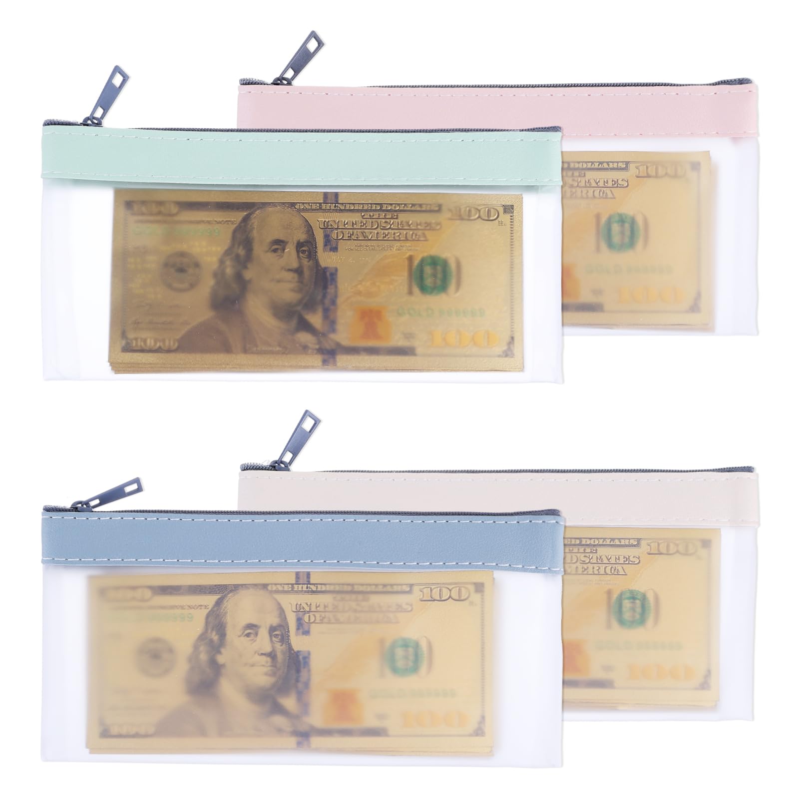 4 sobres de dinero para efectivo, bolsas de dinero de 7.8 x 3.9 pulgadas con cremallera, sobres de efectivo multiusos para cartera