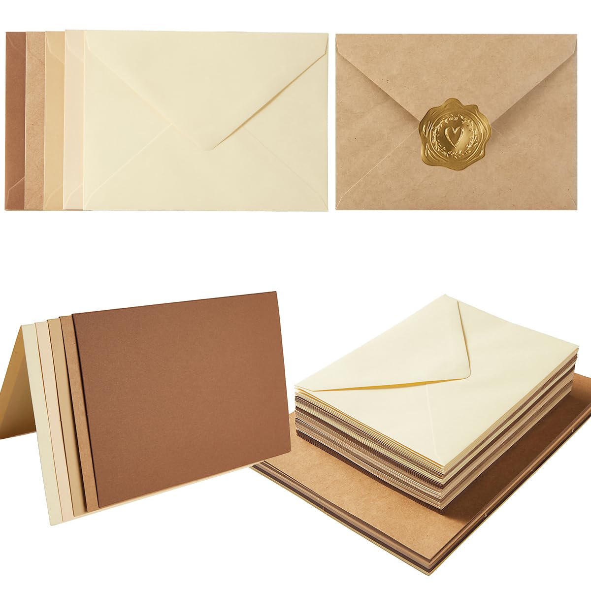 Paquete de 50 sobres A7 de colores con juego de tarjetas en blanco, sobres de 5 colores con cartulina de 5 x 7 y calcomanías dorad