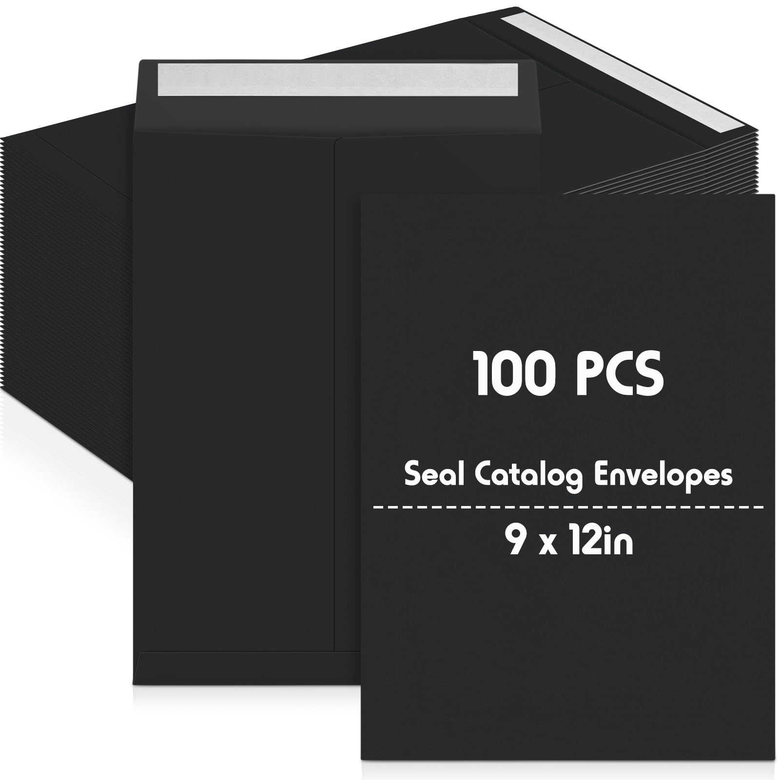 Janlaugh 100 sobres de catálogo negros de 9 x 12 pulgadas, autoadhesivos, sobres de manilla de 32 libras, papel kraft para despega