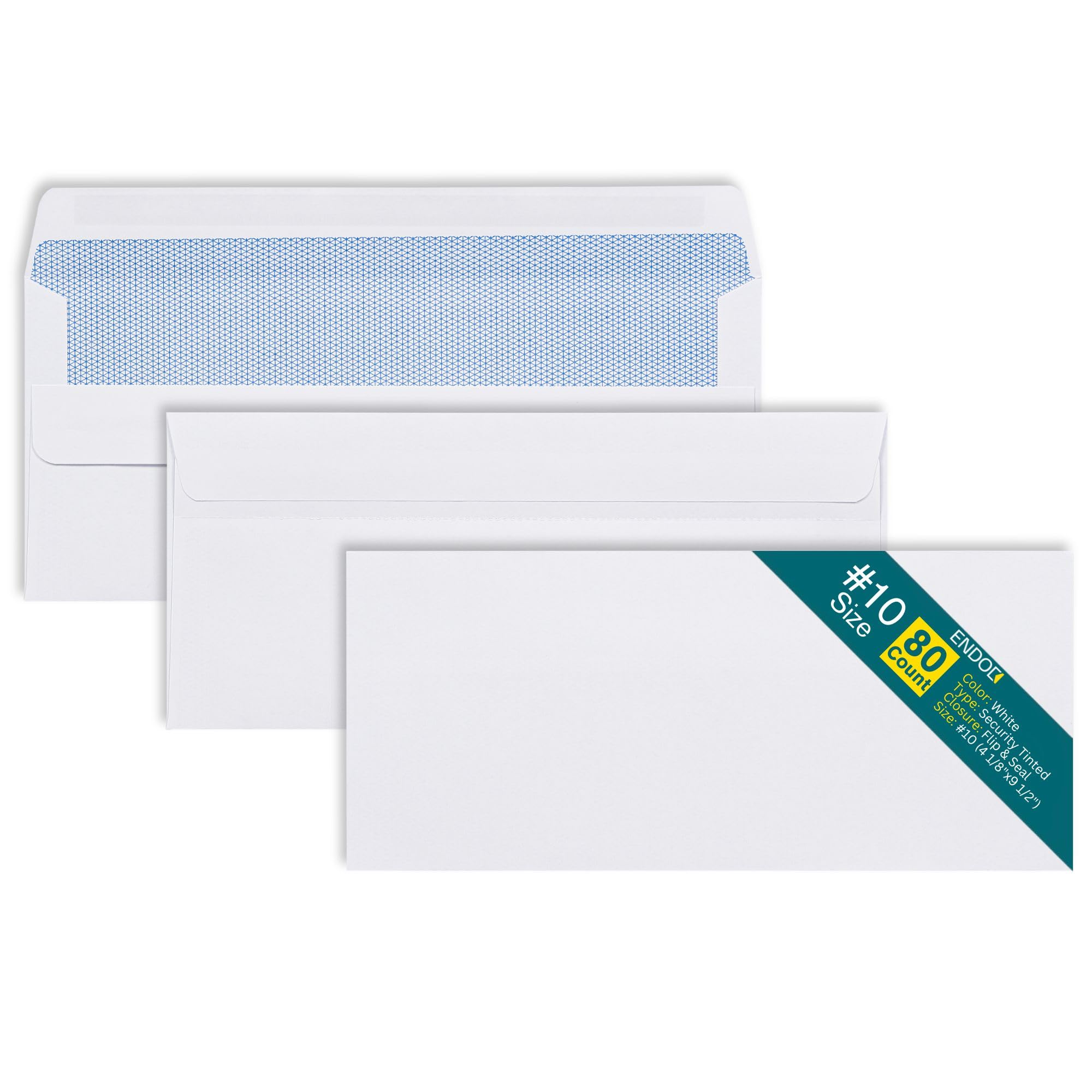 EnDoc Paquete de 80 sobres de seguridad autosellantes #10, sobres de correo sin ventanas con cierre abatible y adhesivo, 4 1/8 x 9