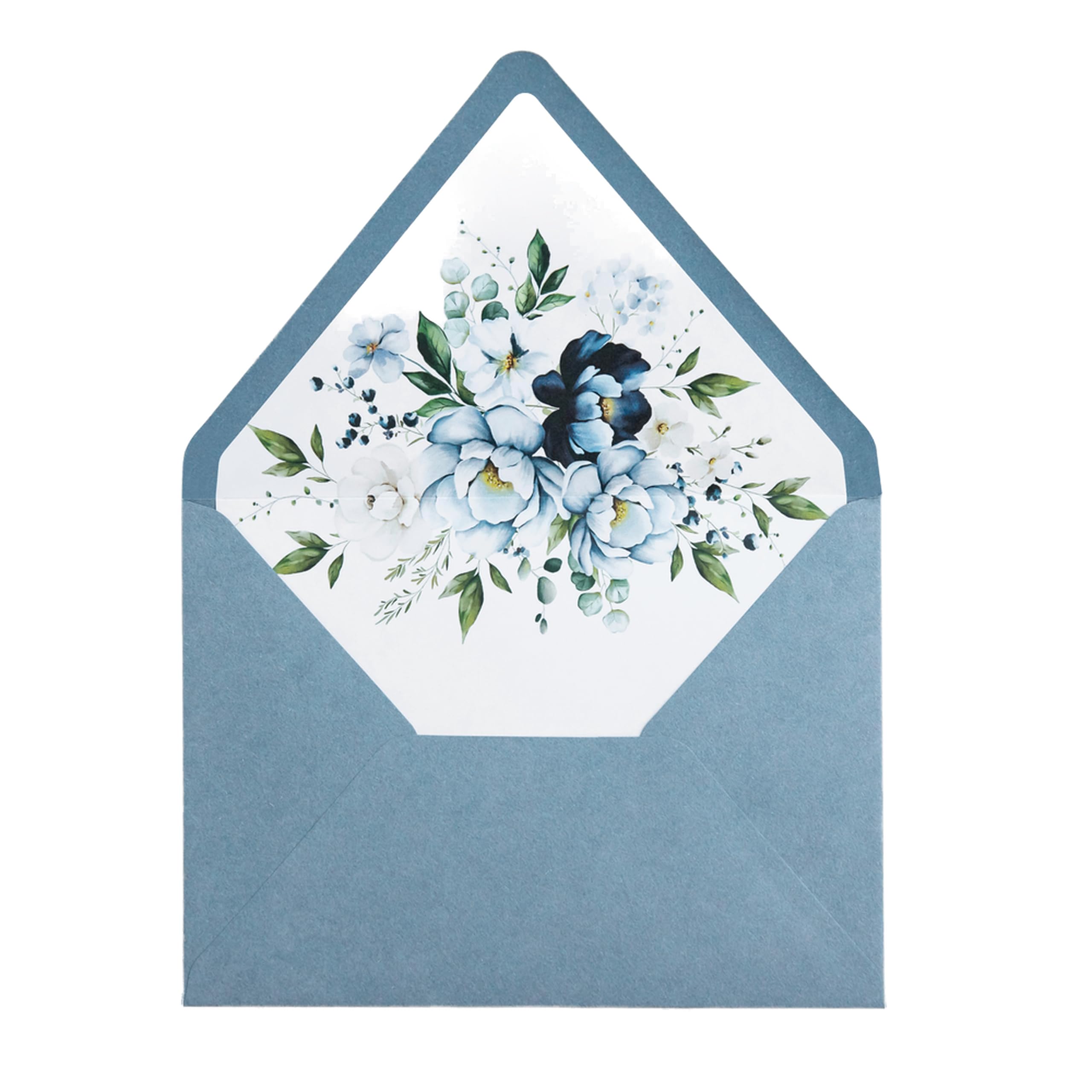 PONATIA 50 sobres con solapa europea A7, 5.25 x 7.25 pulgadas, sobres de forro de flores azules polvorientas para invitaciones de