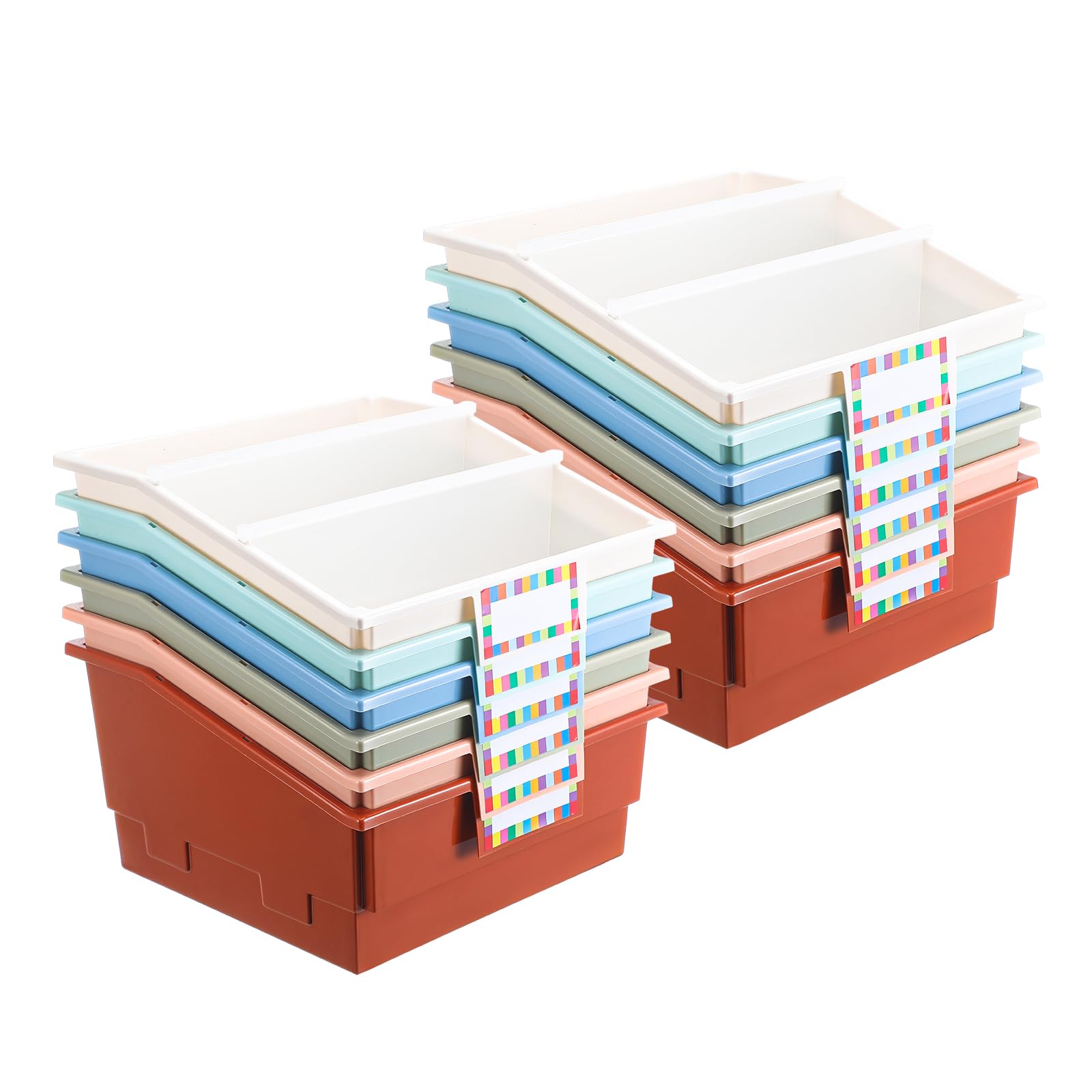 12 Sets Book Bin with Divider – Boho Plastic Classroom Picture Book Holder Bin Regular Size for School Library Office Home Storage