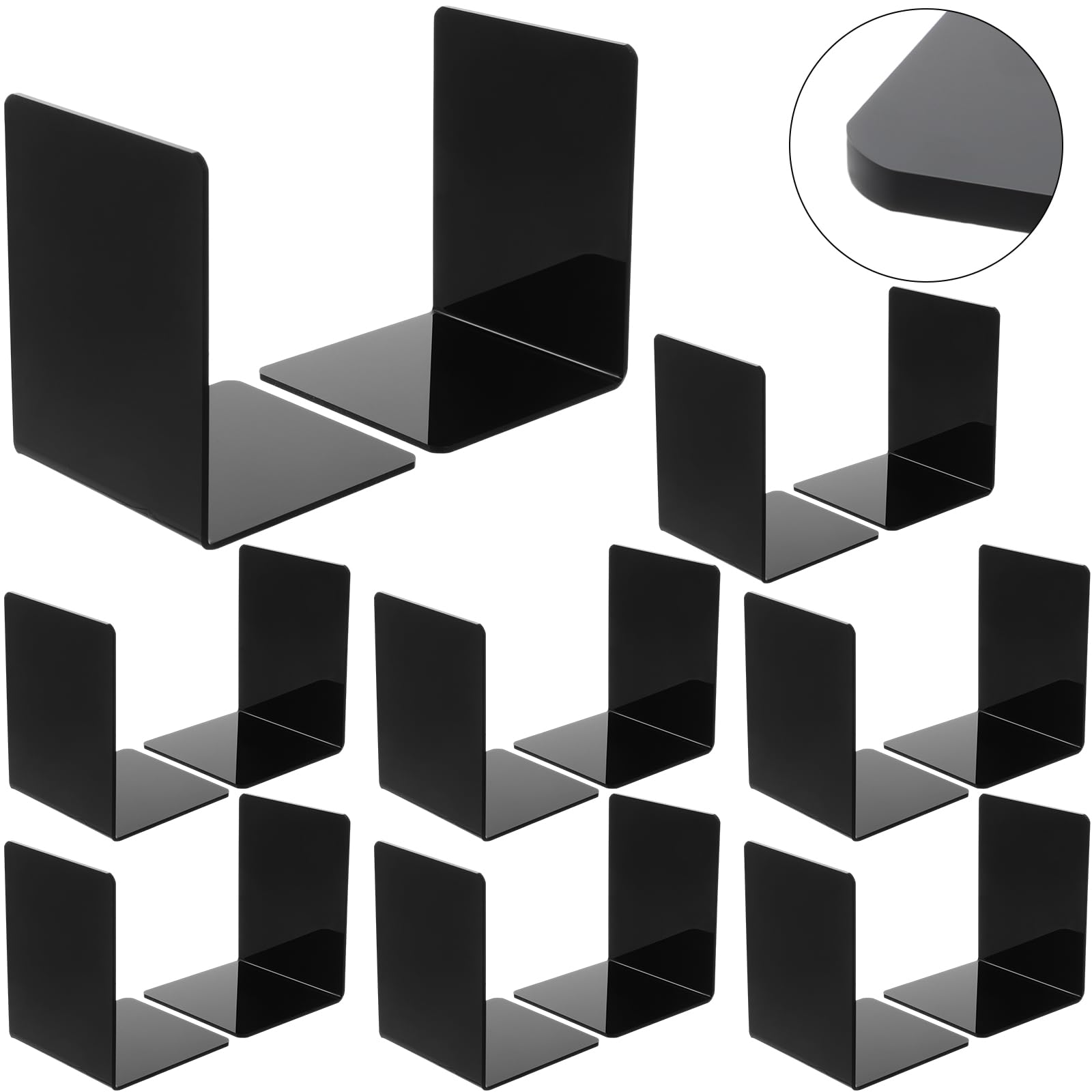 Sujetalibros acrílicos negros para estantes, resistentes en forma de L, tapón para biblioteca, películas caseras, CDs, archivo, 8