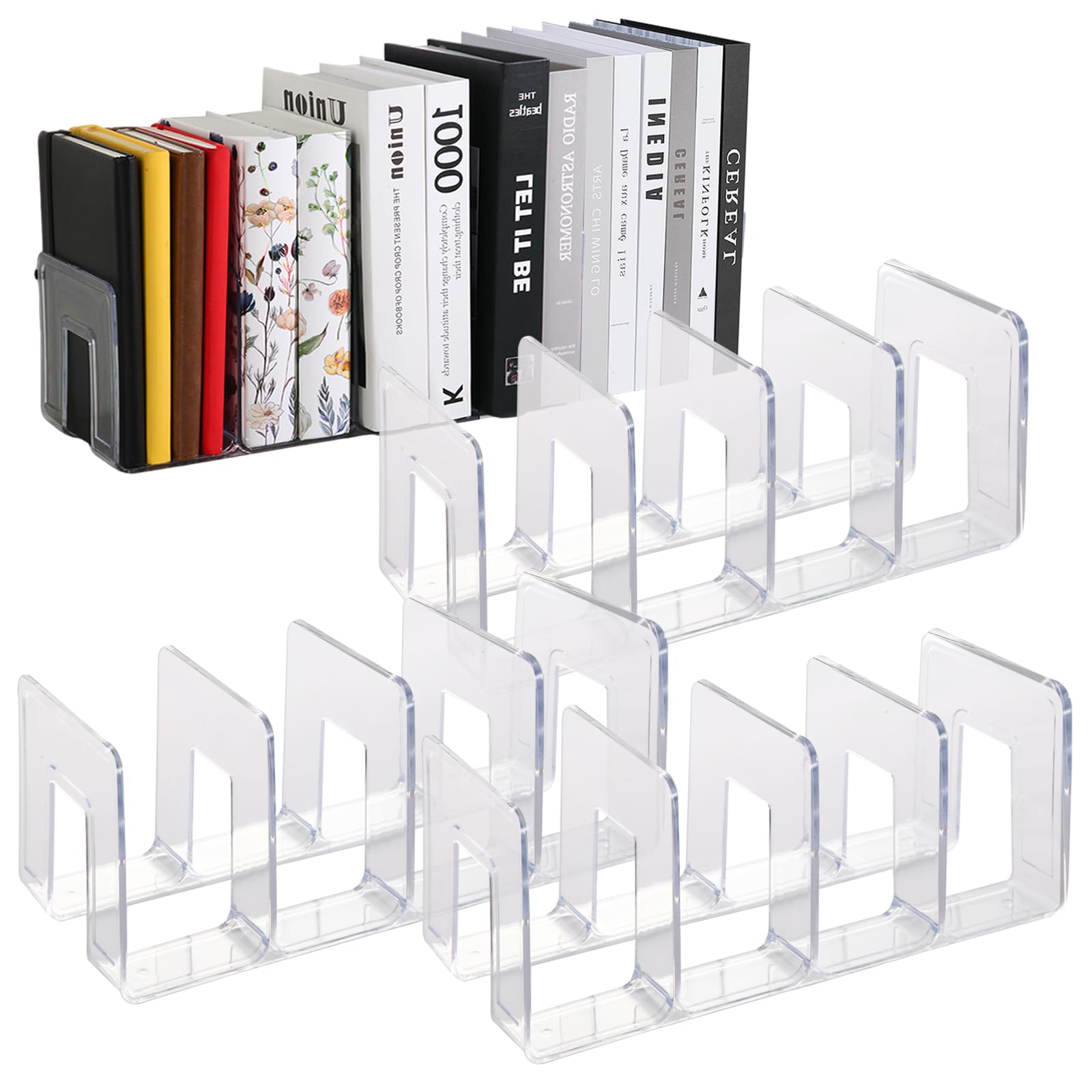 Paquete de 4 clasificadores de archivos de acrílico transparente, organizador de carpetas de libros de escritorio resistente, divi