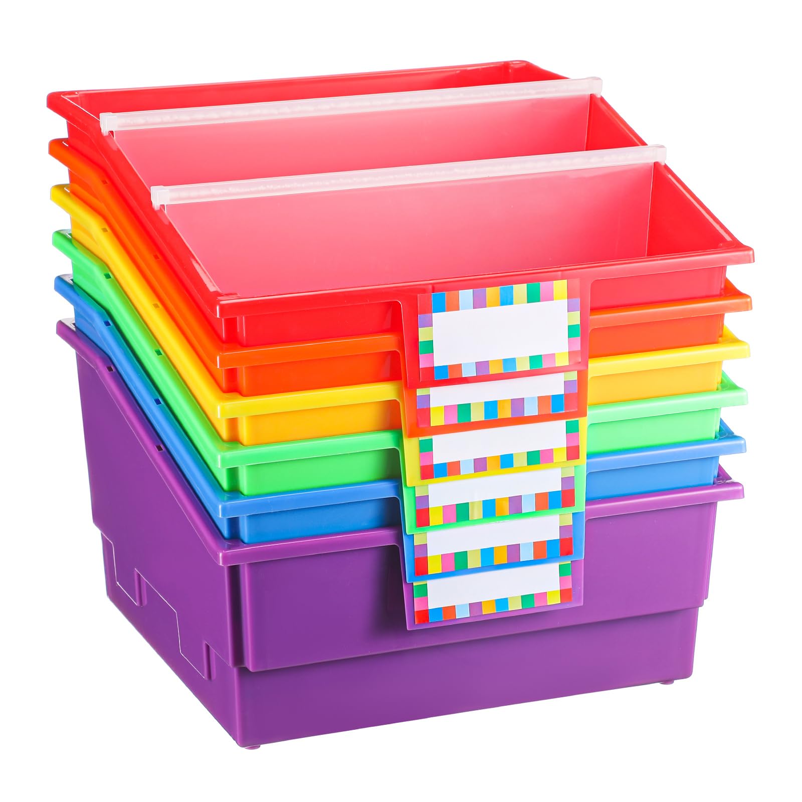 Juego de 6 cubos de plástico para libros, contenedores para libros de imágenes con divisores y etiquetas para documentos de biblio