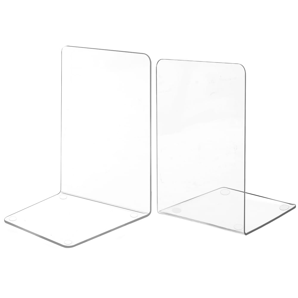 UMPE Juego de sujetalibros de acrílico transparente, 2 piezas de alta resistencia para libros, estantes y artículos de papelería p