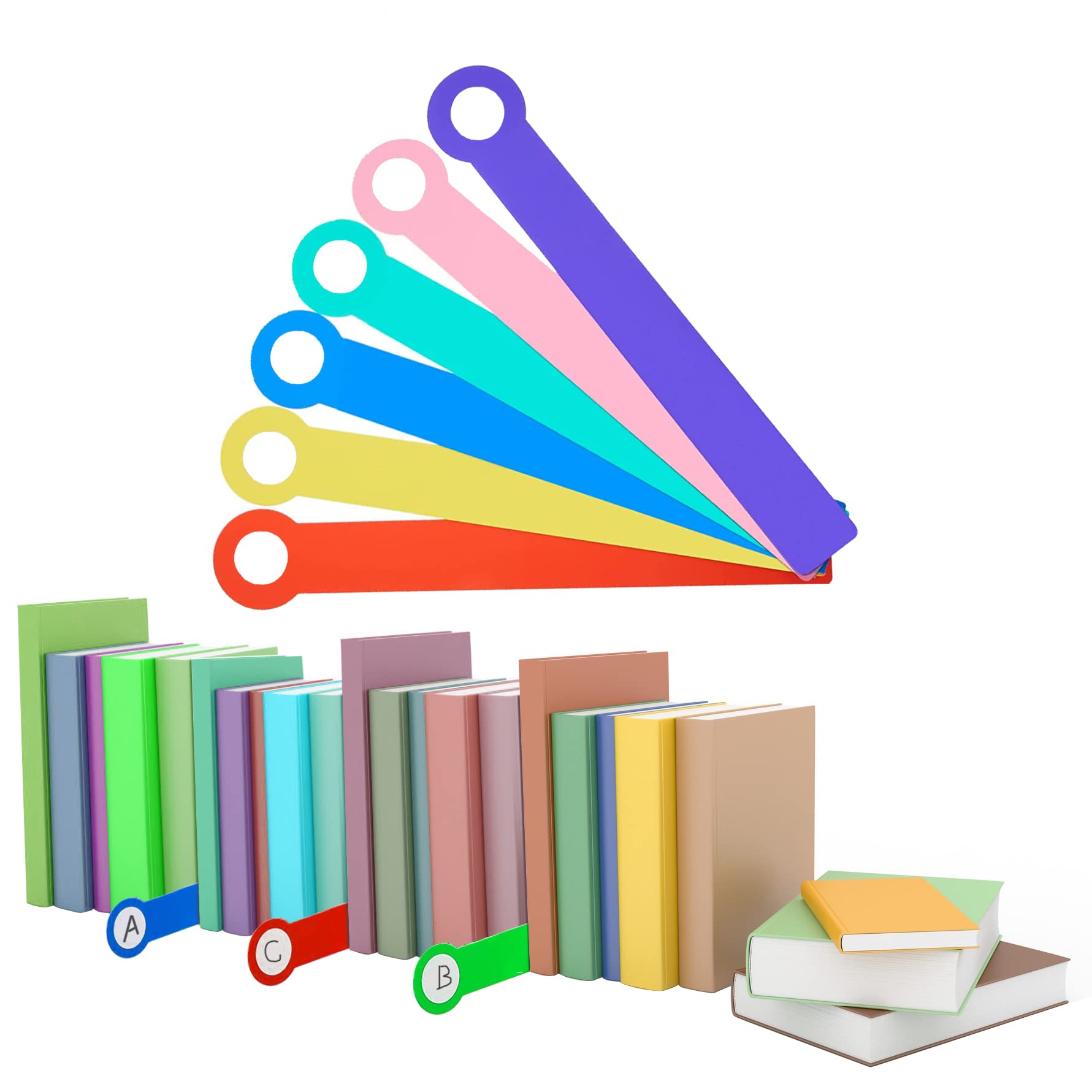 50 separadores de libros de biblioteca de 7.8 x 4.7 pulgadas para estantes con calcomanías reposicionables, marcadores de estantes