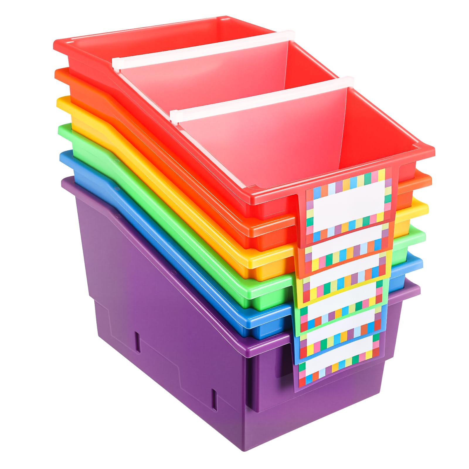 Paquete de 6 cubos organizadores de libros de imágenes con divisores, grandes soportes de plástico para libros con etiquetas, cont