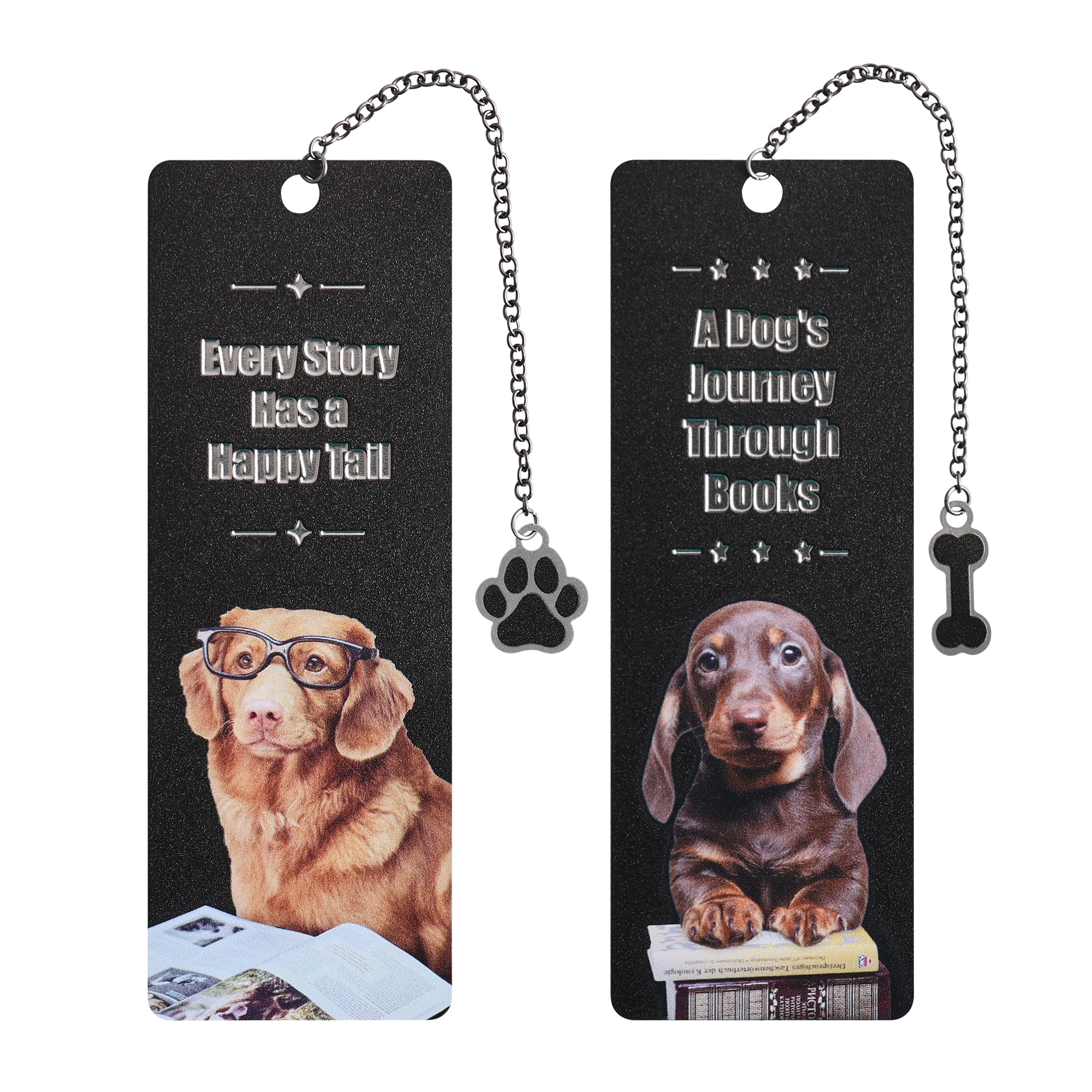 2 marcapáginas de metal con escala graduada, diseño de perro salchicha negro, marcapáginas de gran tamaño para amantes de los libr