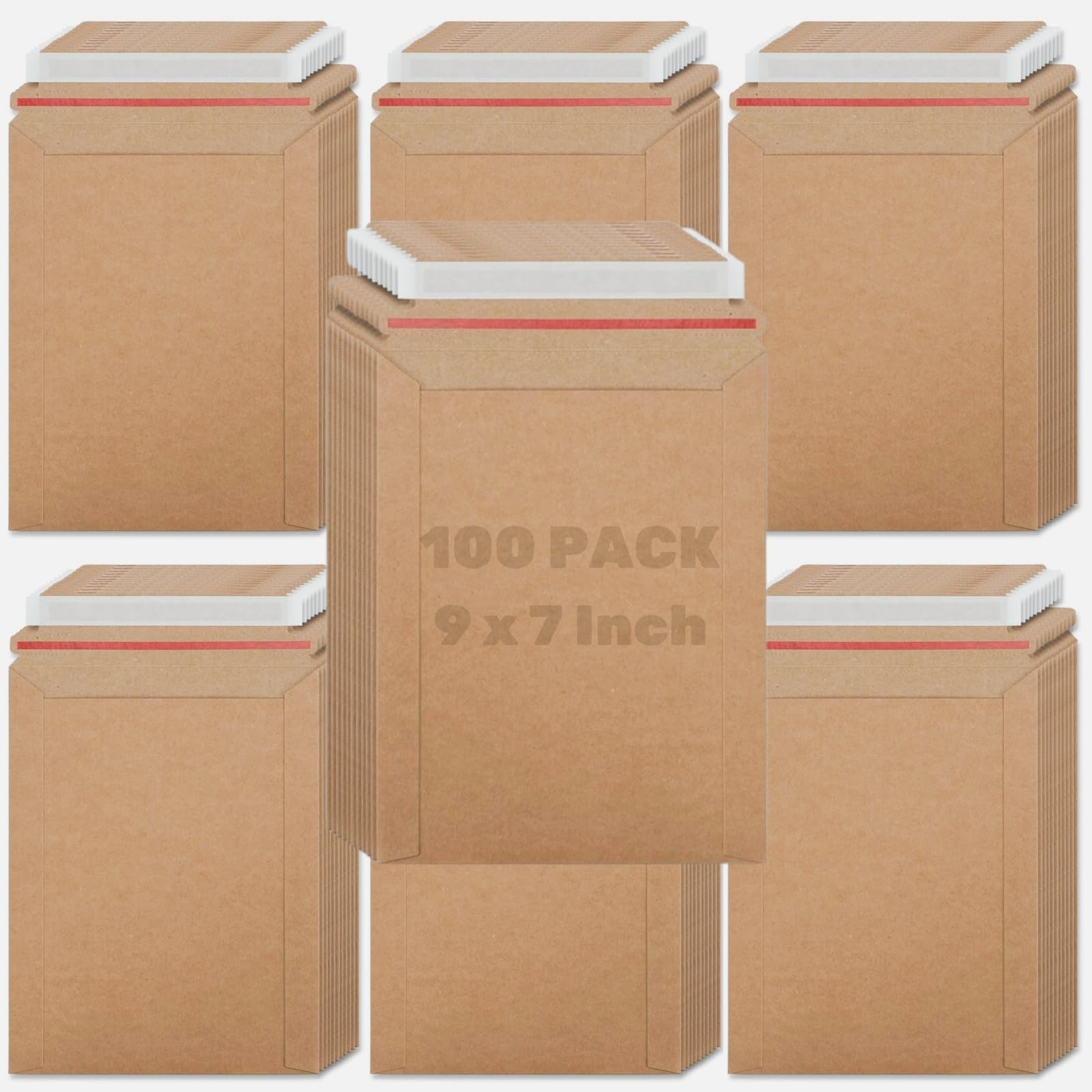 RHBLME Paquete de 100 sobres rígidos de 7 x 9 pulgadas, autoadhesivos, sobres de cartón plano a granel, cartón minimalista para en