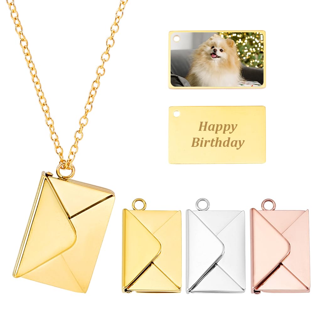 PH PandaHall Dijes de 3 colores con letras de amor, mini caja de fotos, medallón vintage, colgantes de sobre, dijes de metal para
