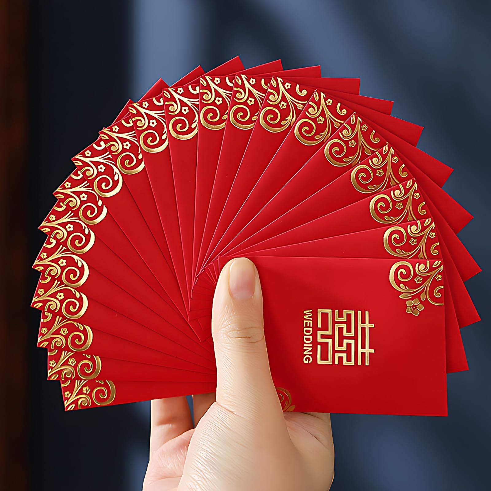 Mini Chinese Wedding Red Envelopes, Approximately 45 Pack, Traditional Floral Double Happiness Design, Money Packets Hong Bao