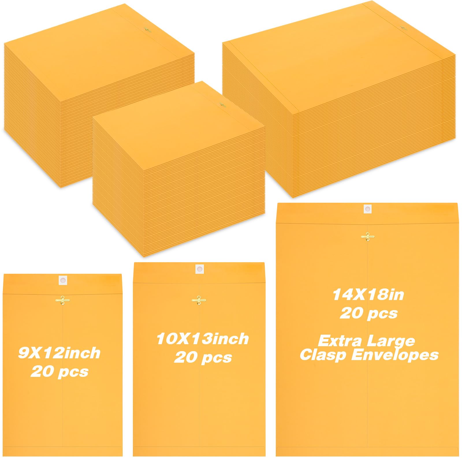 60 sobres de 3 tamaños extra grandes con cierre de correo de 14 x 18, 10 x 13, 9 x 12 pulgadas, sobres de papel kraft de manila co