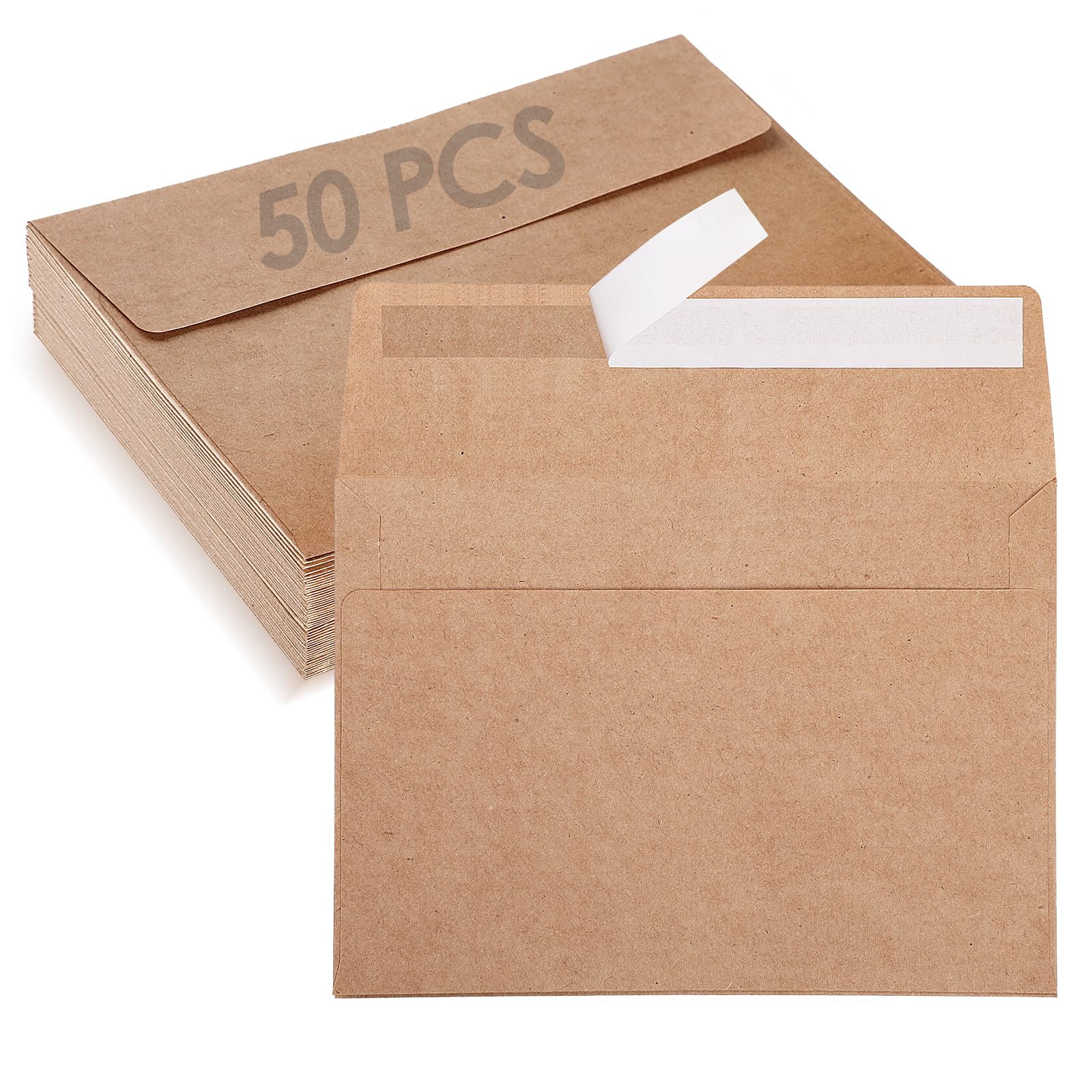 GeeRic Paquete de 50 sobres de papel kraft autosellantes, sobres de correo para tarjetas de felicitación A7 para invitaciones, anu