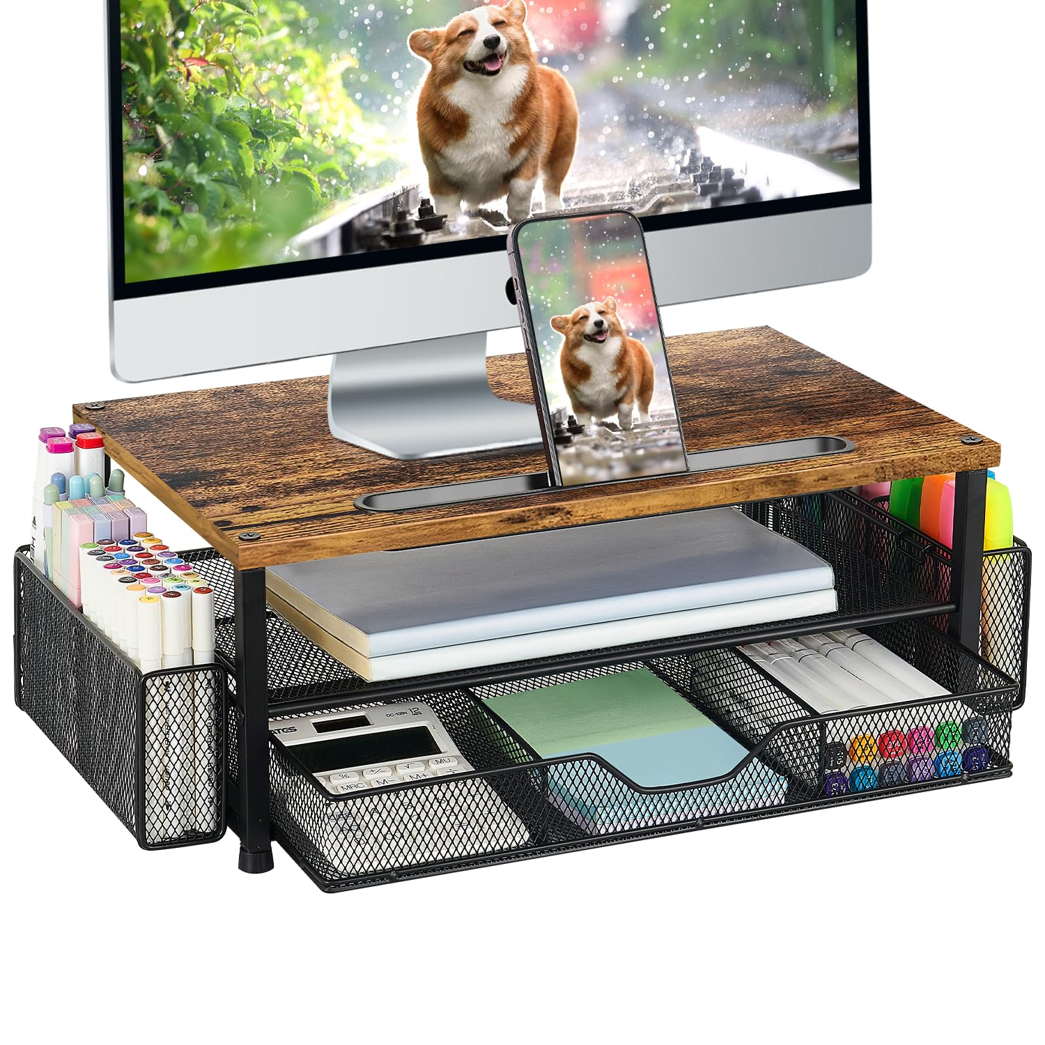 Simple Trending Soporte elevador para monitor y organizador de escritorio de madera para computadora con cajón y soporte para bolí