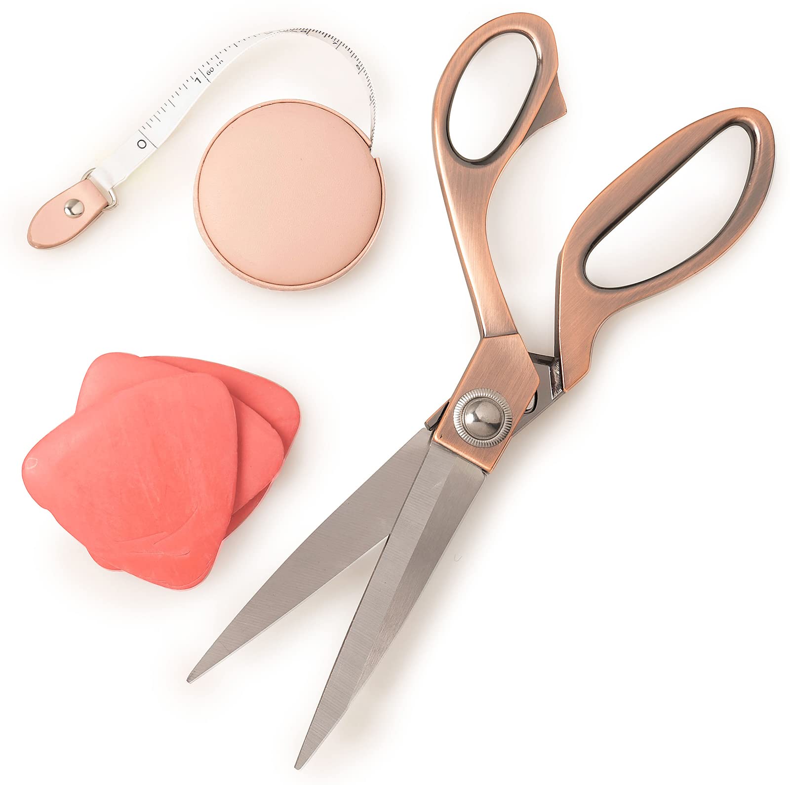 Tijeras afiladas de 9.5 pulgadas para sastre profesional y costurera para cortar telas pesadas y cuero, cinta métrica y tiza de sa