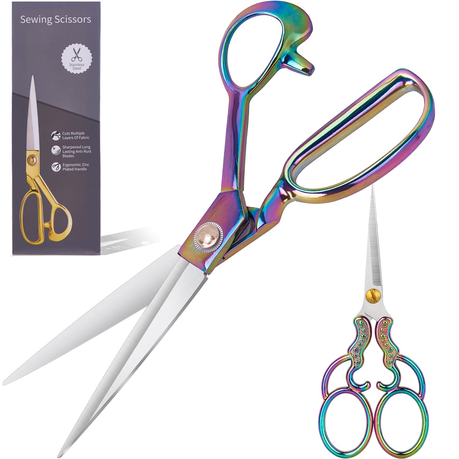 AMORNPHAN Tijeras de sastre resistentes de 10 pulgadas, tijeras de acero inoxidable, costura y costura, tela multiusos, tela de co