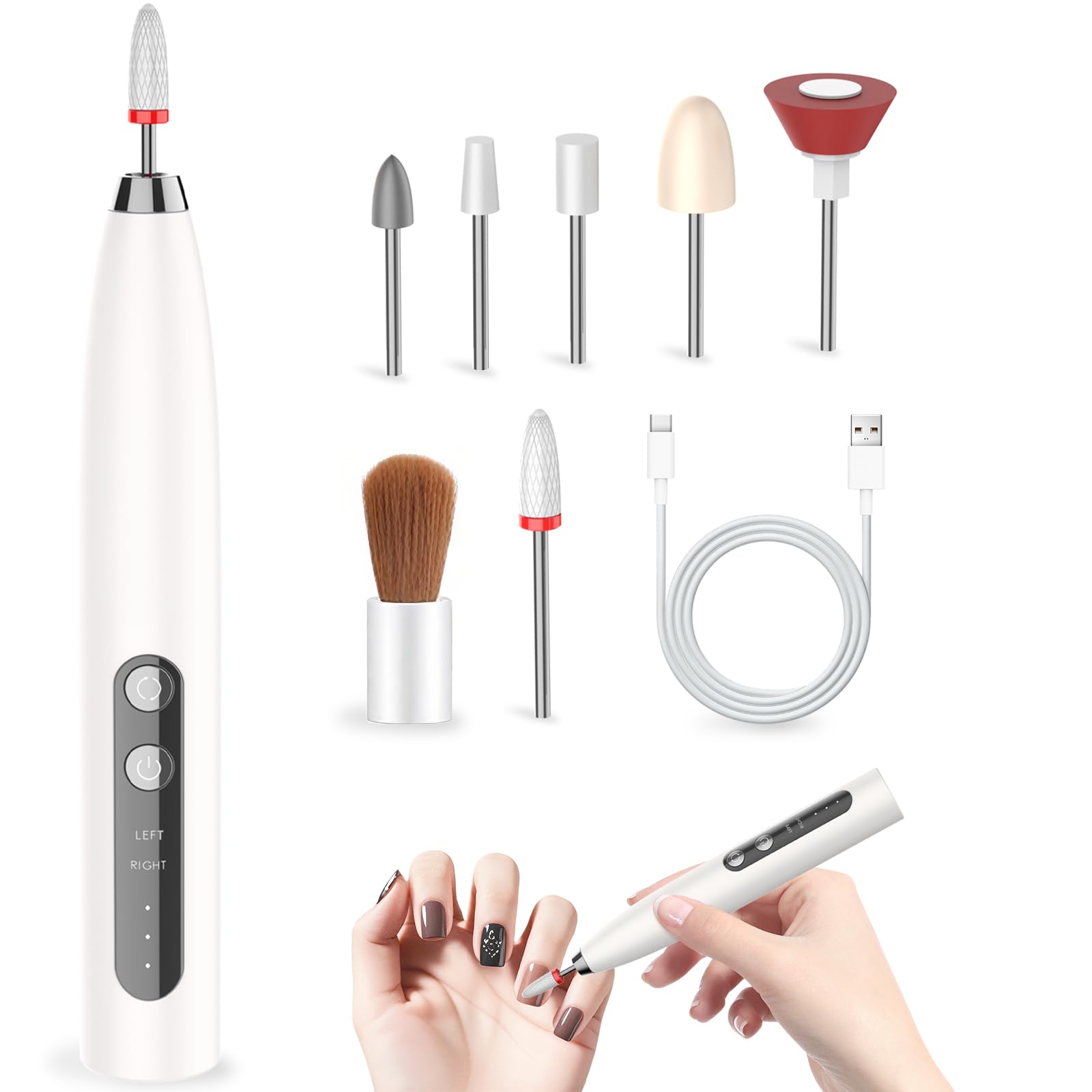 Taladro de uñas eléctrico, taladro de uñas inalámbrico con velocidad ajustable, lima de uñas portátil para uñas de gel acrílico, h