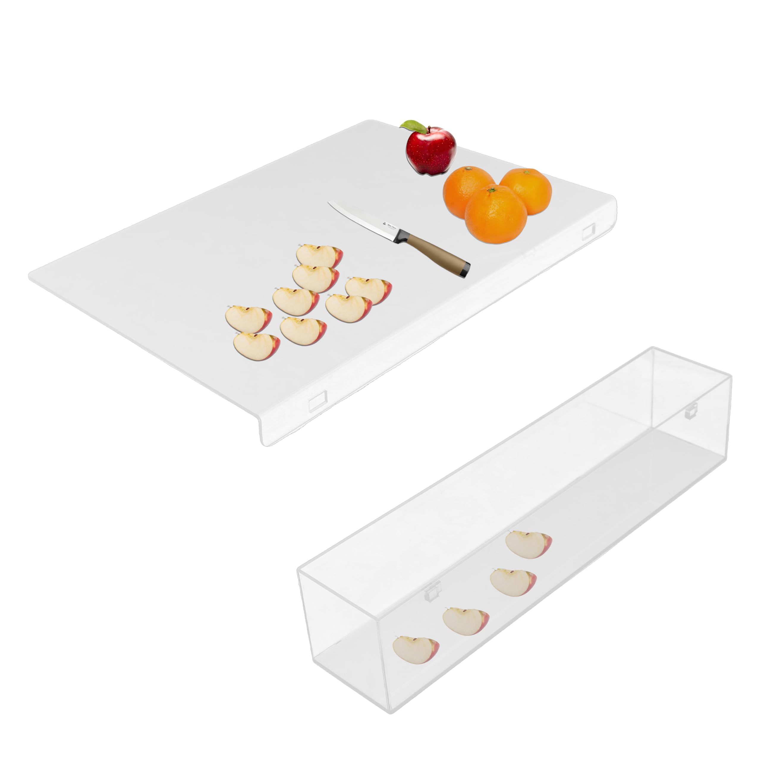 Tabla de cortar de acrílico transparente con borde de mostrador y contenedor de residuos desmontable, diseño voladizo para encimer