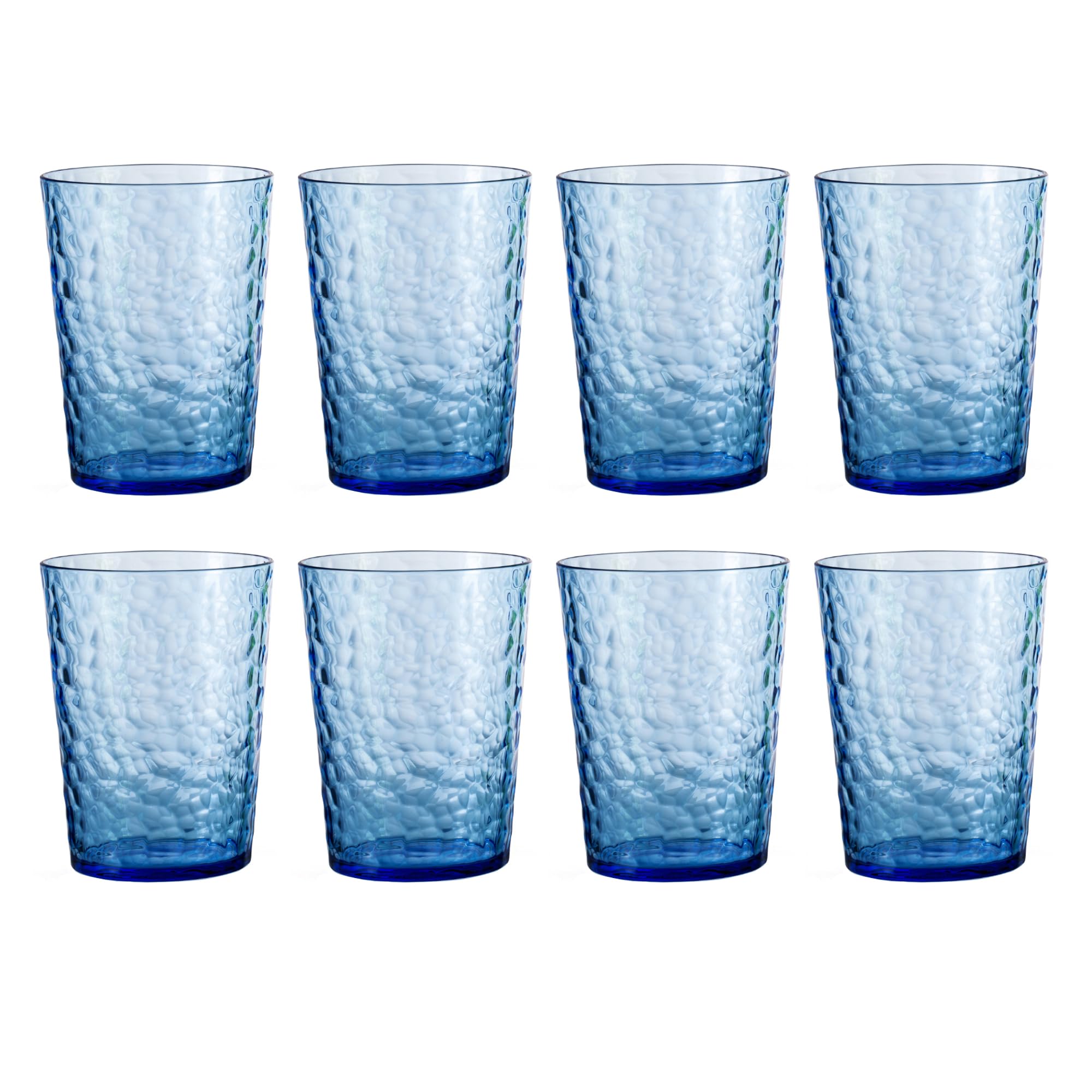 Vasos de plástico de 14 onzas, vasos acrílicos de bolas altas, juego de 8 vasos de plástico reutilizables azules, estilo martillad