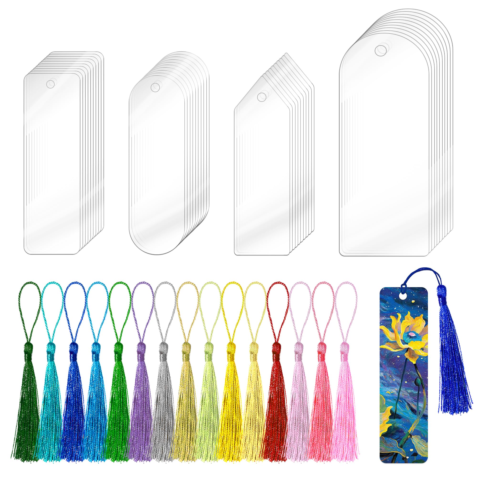 60 marcapáginas de acrílico en blanco, kit para hacer marcapáginas de bricolaje a granel con borlas para niños, adultos y profesor