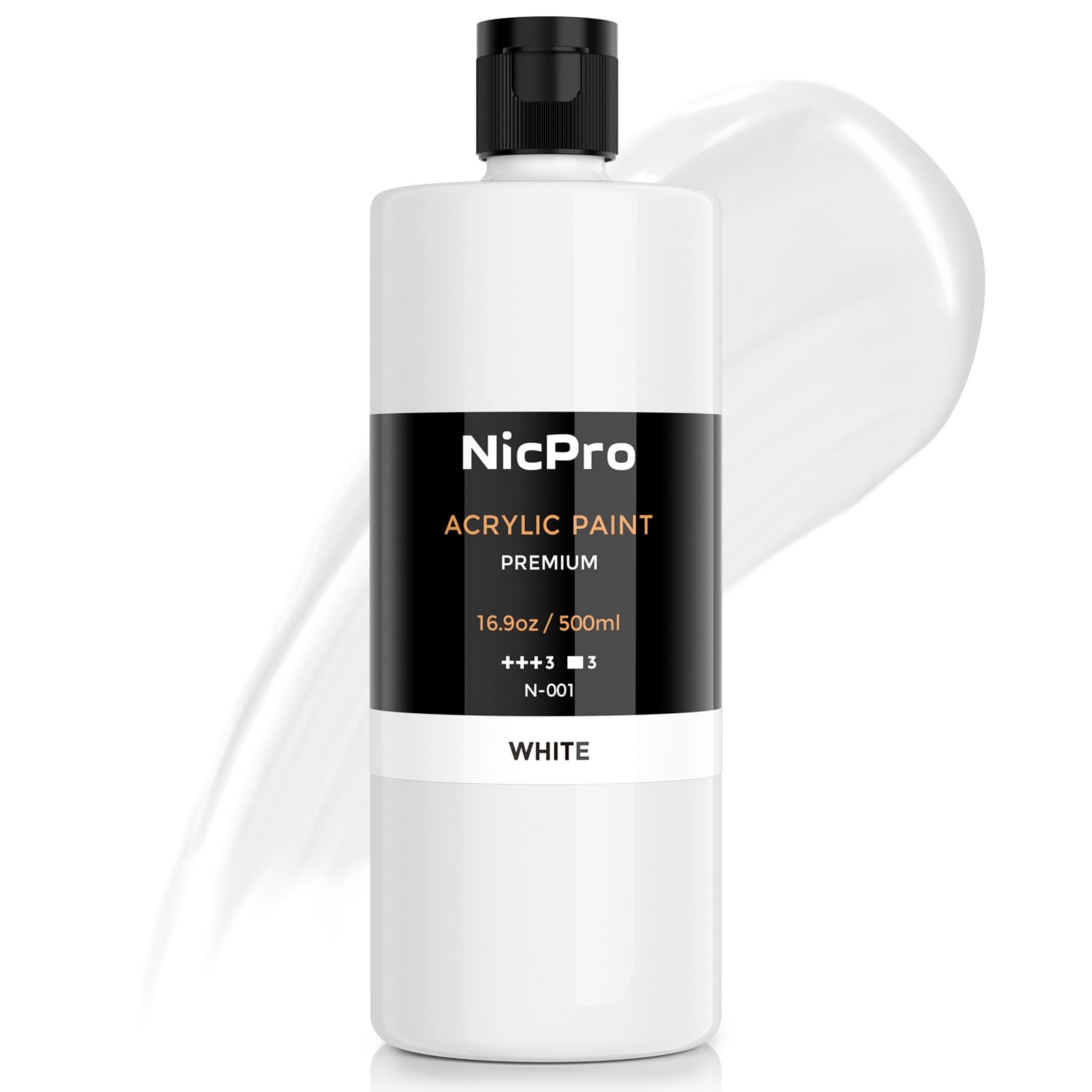 Nicpro Pintura acrílica blanca grande (16.9 onzas, 16.9 fl oz), pigmentos ricos, pintura artesanal no tóxica para múltiples superf
