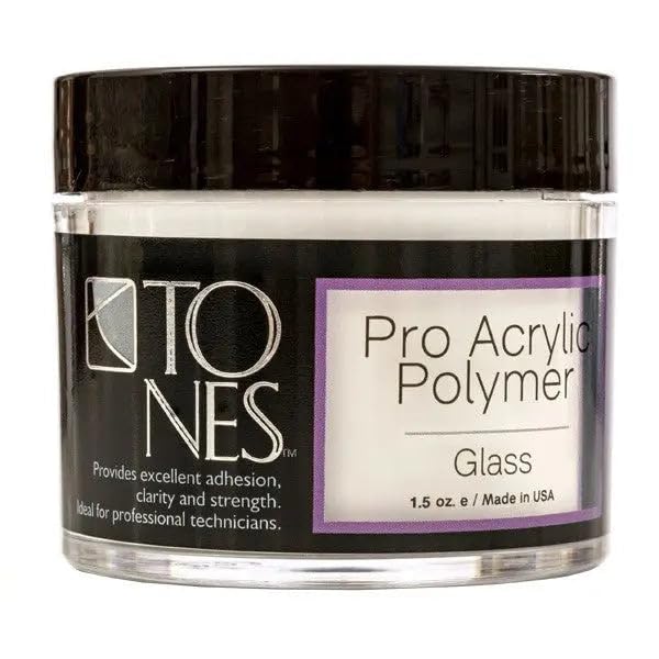 Tones Polvo de polímero acrílico profesional, vidrio, 3.5 onzas, retención duradera, consistencia sedosa, claridad cristalina y fó