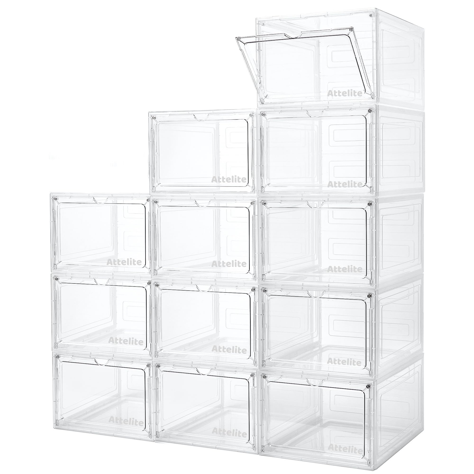 Attelite Paquete de 12 cajas de almacenamiento para zapatos, caja organizadora de zapatos de plástico apilable transparente gruesa