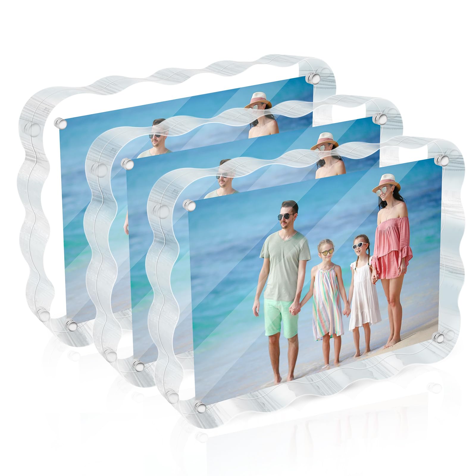 Paquete de 3 portarretratos magnéticos acrílicos de 4 x 6 pulgadas de grosor, 0.787 in de grosor, marco de fotos independiente de