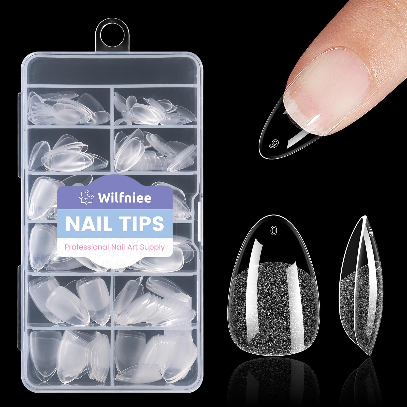 Puntas de uñas cortas de almendra: 240 puntas de uñas acrílicas preformadas de gel suave, 12 tamaños, uñas transparentes a presión