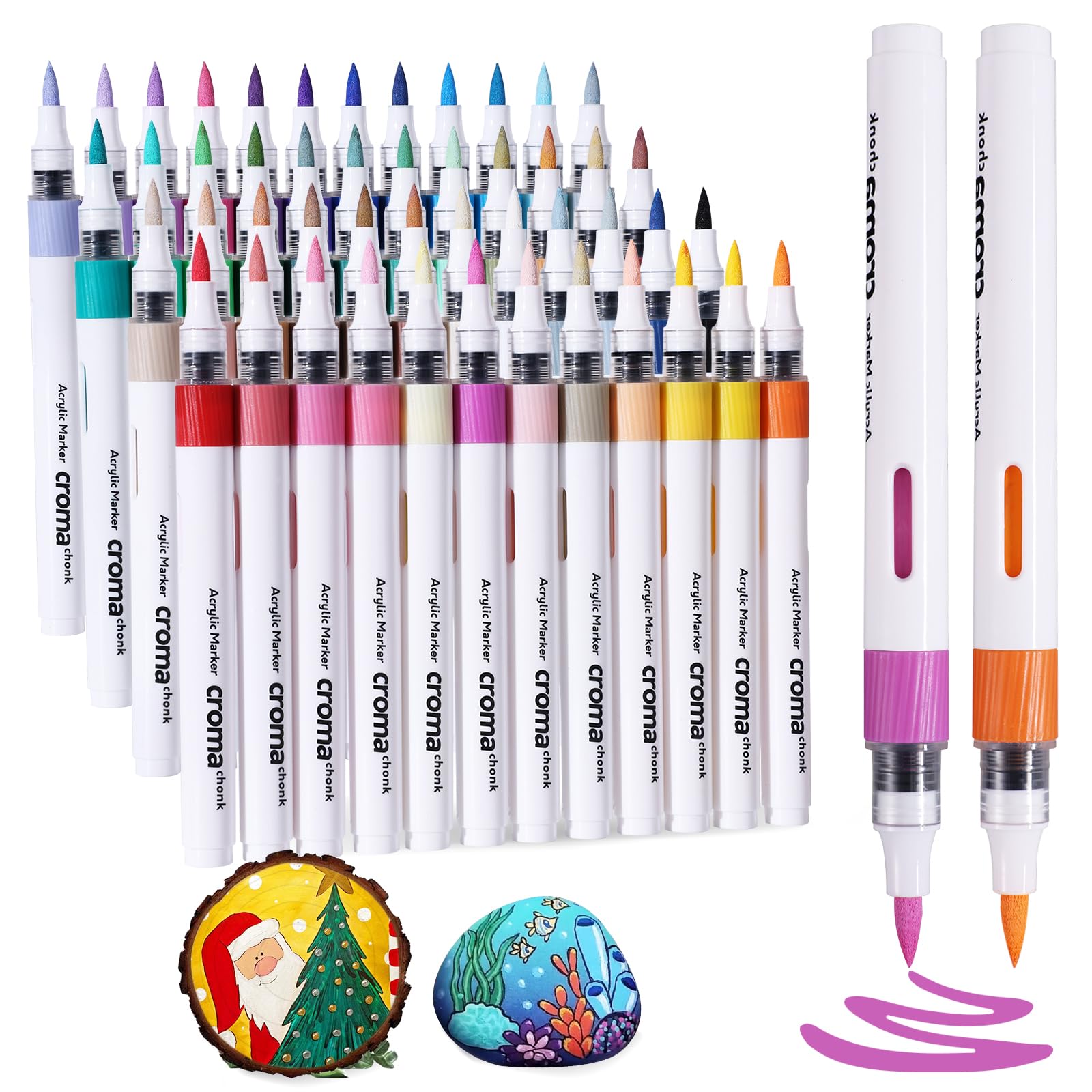 Croma Marcadores de pintura acrílica, 48 colores, marcadores de pincel acrílico, control automático de tinta, rotuladores de tela