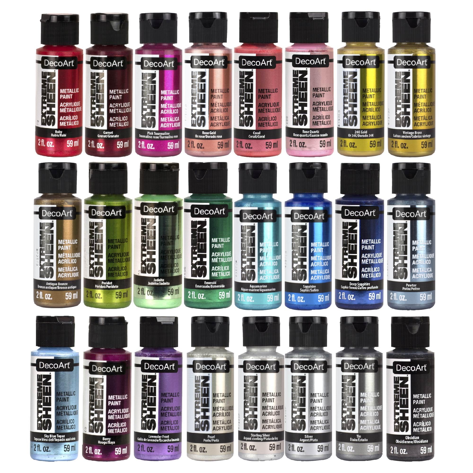 DecoArt Americana Acrylic Paint Pintura metálica de brillo extremo, juego de iniciación de 24 colores metálicos, botella de 2 onza