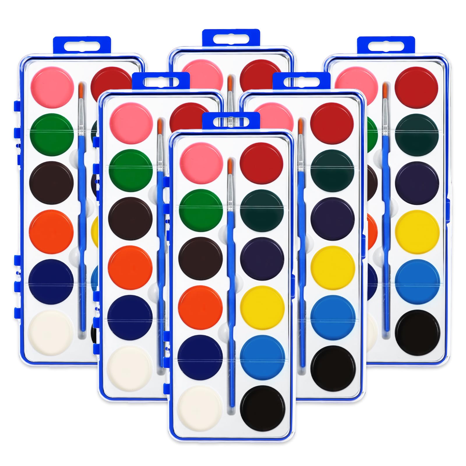 Juego de 6 pinturas de acuarela para niños, 12 colores de acuarelas con pincel, juego de pintura de acuarela para niños para recue