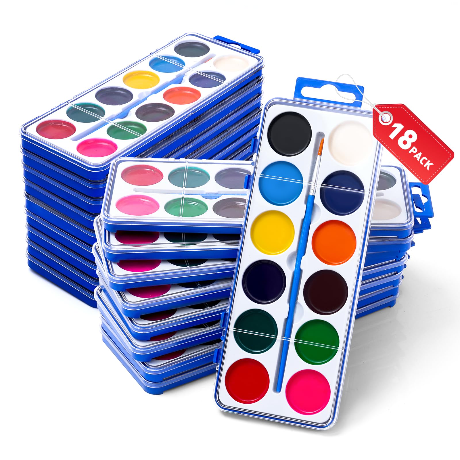 Paquete de 18 pinturas de acuarela para niños, 12 colores de acuarelas con pincel, juego de pintura de acuarela para niños para re