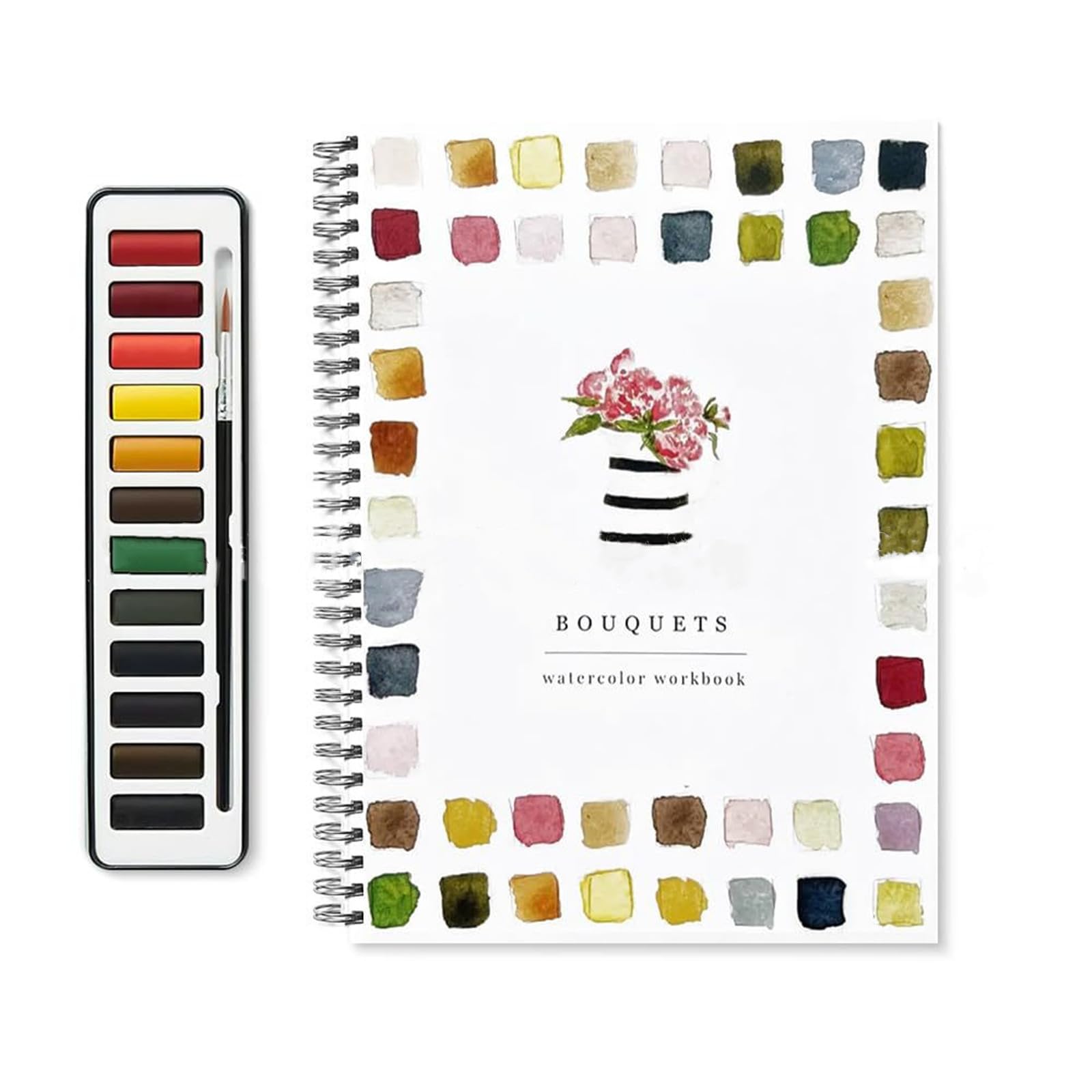 Libro de trabajo de acuarela, colorido libro para colorear con pinturas de acuarela de 12 colores, set de pinceles de pintura para