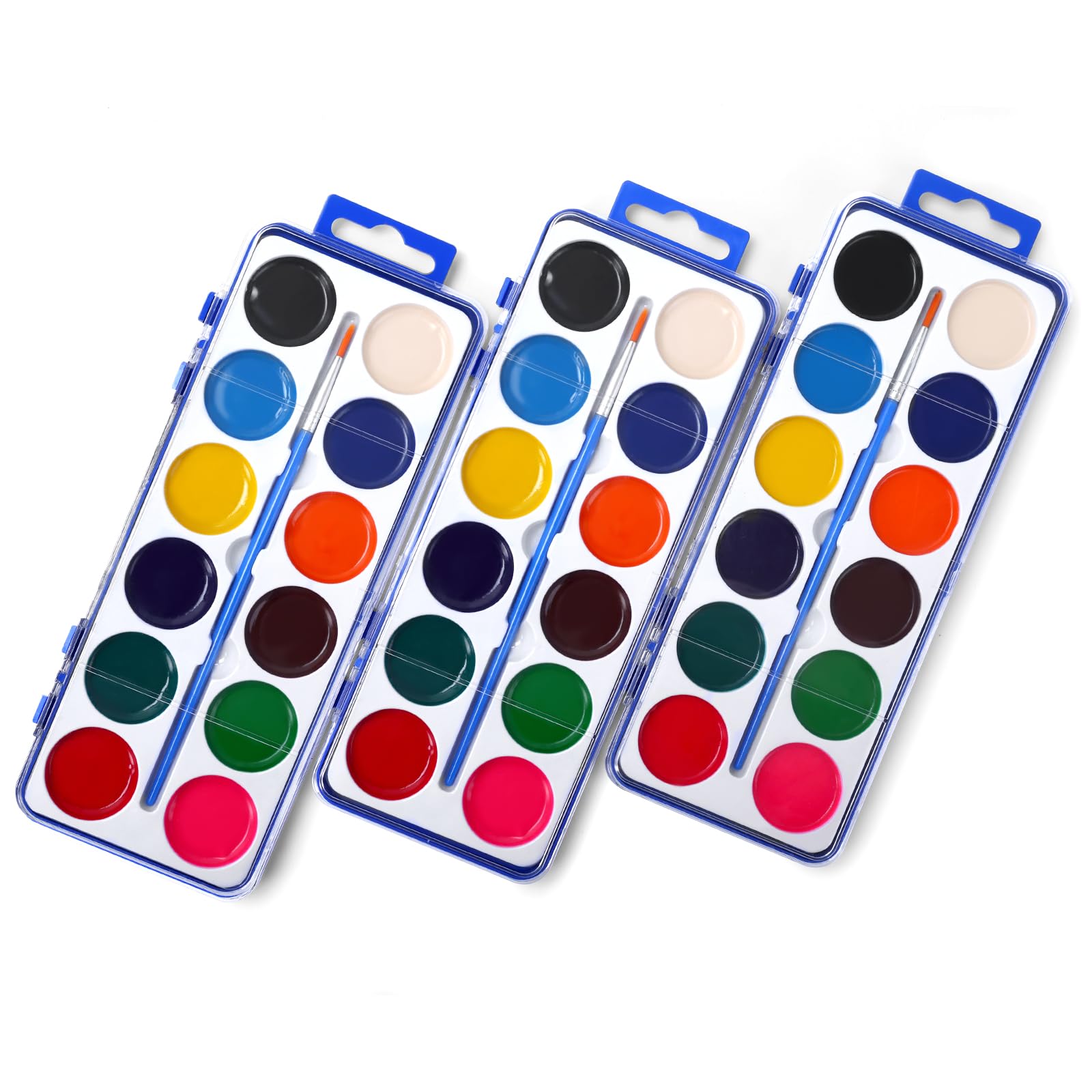 Juego de 3 pinturas de acuarela para niños, 12 colores de acuarelas con pincel, juego de pintura de acuarela para niños para recue